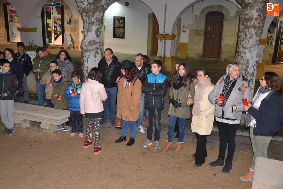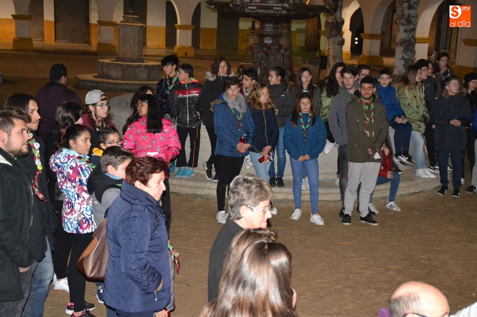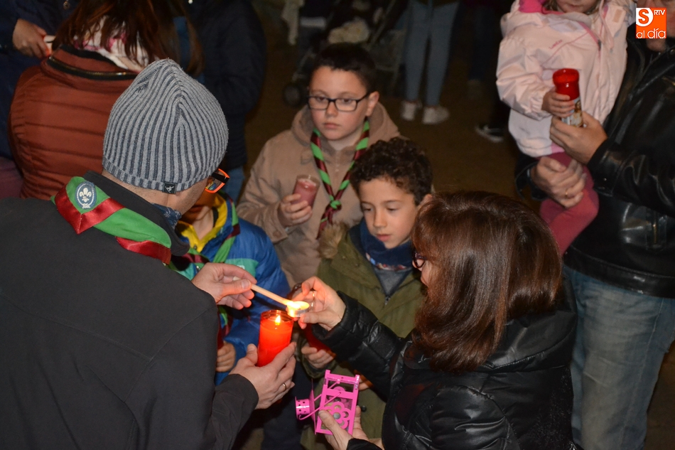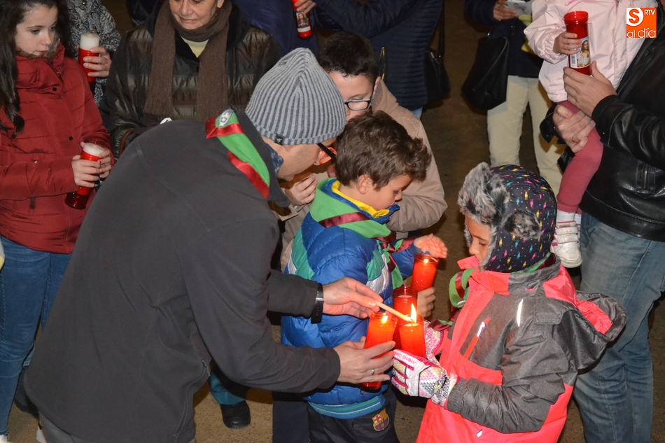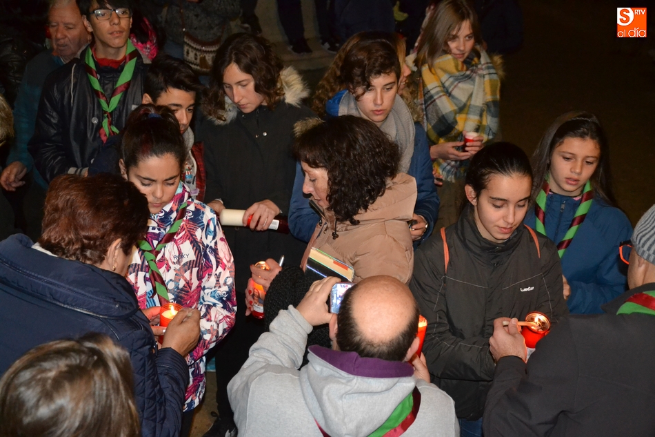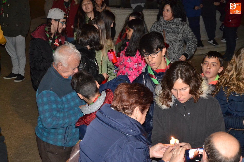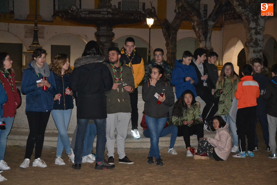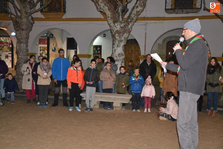 Dentro de una tarde de viernes muy ajetreada en el centro histórico de Ciudad Rodrigo, también hubo tiempo para que el Grupo Scout Kennedy procediese al reparto de la Luz de la Paz de Belén, una de las citas fijas de la época navideña en la ciudad. A diferencia de los dos últimos años, cuando el acto tuvo lugar en la Plazuela de San Salvador, en esta ocasión la Luz se repartió en la Plazuela del Buen Alcalde, que ya acogió el reparto en 2013 y 2014.