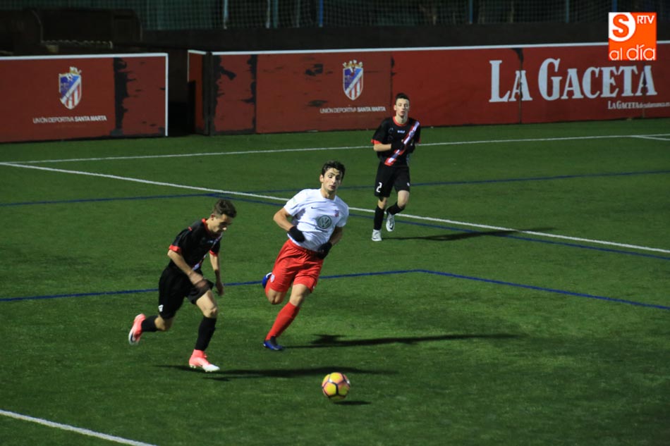 Santa Marta y Munibar Pizarrales han protagonizado este sábado el partido más atractivo de la jornada en la Liga Regional de Juveniles. Un duelo salmantino que se saldaba con un contundente 6 a 1. Mario adelantaba a los locales en el minuto 8 y poco después Joel lograba el empate para el Pizarrales.