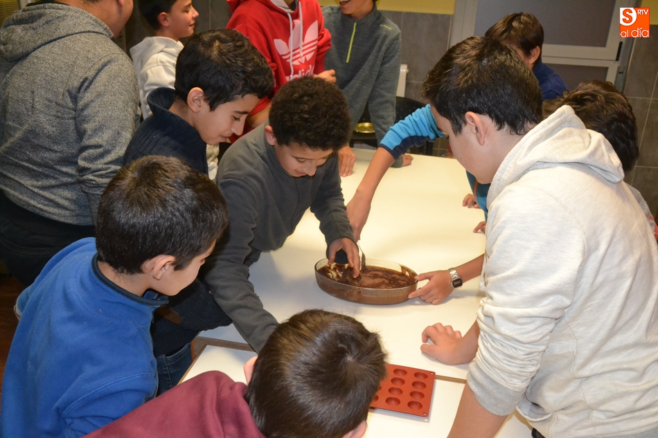 Los más jóvenes aprenden a hacer bombones de chocolate en el Espacio i