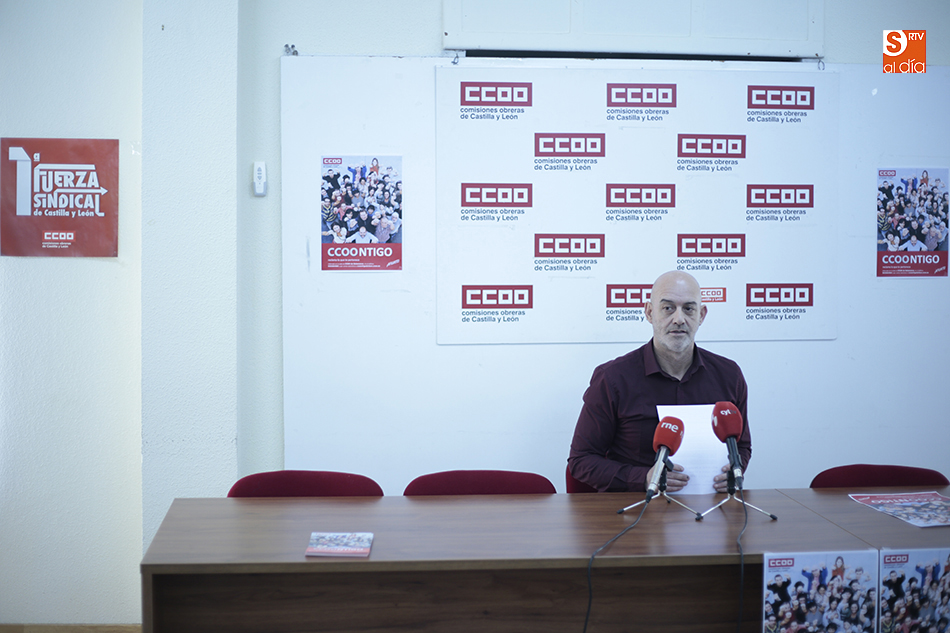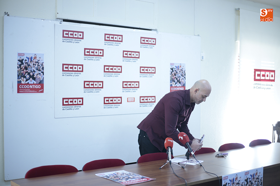 Emilio Pérez Prieto, secretario general de Comisiones Obreras de Salamanca, ha presentado este miércoles la iniciativa 'CCOOntigo. Reclama lo que te pertenece'. Se trata de una campaña de atención jurídica gratuita, dirigida a todas aquellas personas que tienen empleos precarios y salarios insuficientes y que precisan asesoramiento profesional para reclamar ante sus empresas.