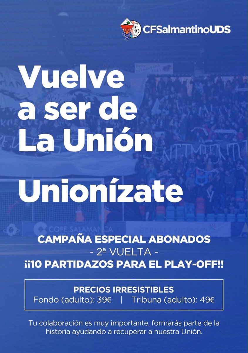 El CF Salmantino UDS facilita a los aficionados que estén intersados los abonos de media temporada. En el caso de los adultos los precios son de 39 euros por la localidad en el Fondo y 49 por ver los encuentros desde Tribuna.