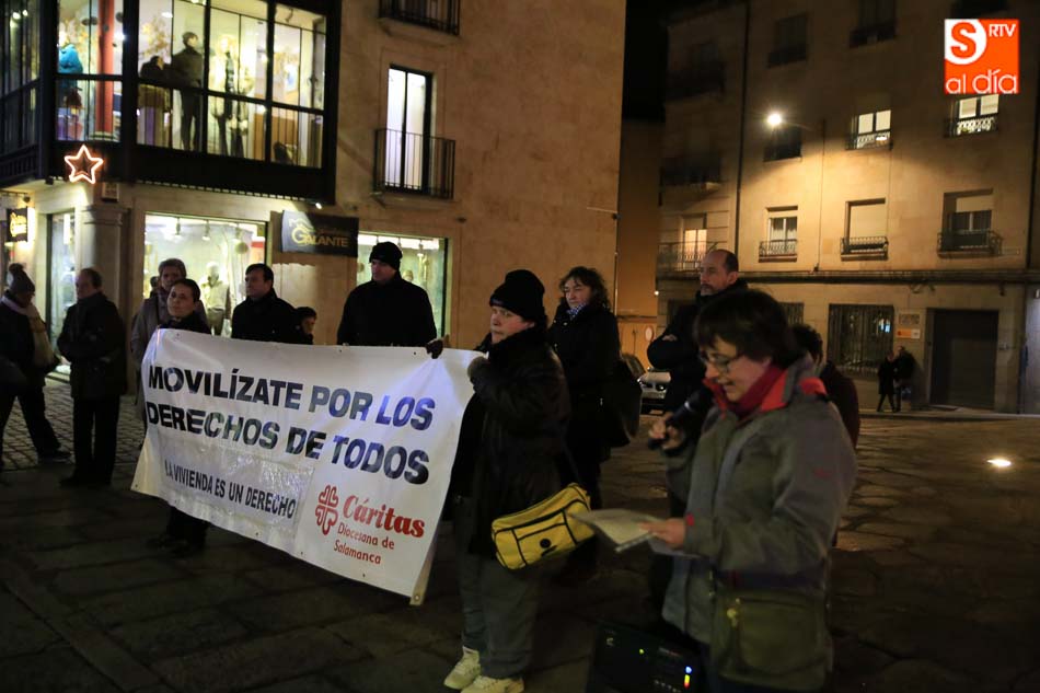 Los círculos de silencio no descansan por Navidad. Así, esta tarde se ha celebrado una nueva reunión en la Puerta Zamora para reclamar el derecho fundamental a la vivienda y denunciar la situación de muchas familias que no pueden tener acceso a un hogar en condiciones dignas. En él se leyó el siguiente manifiesto: