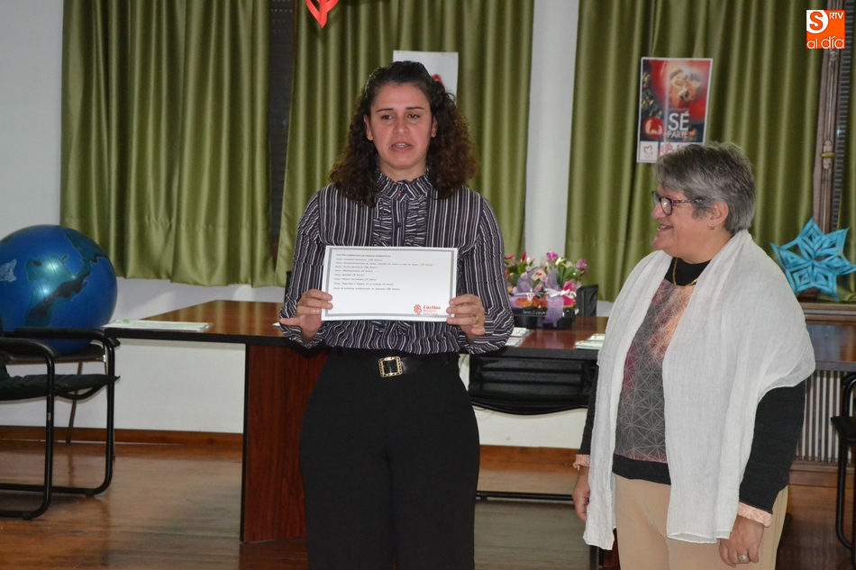 En ese acto final, los 10 alumnos del curso recibieron de manos de la directora de Cáritas, Maribel Yugueros, el diploma acreditativo de haber completado la formación, que está adaptada a la legislación vigente y al contenido de los certificados de profesionalidad del sector, aunque no sea un certificado propiamente dicho.