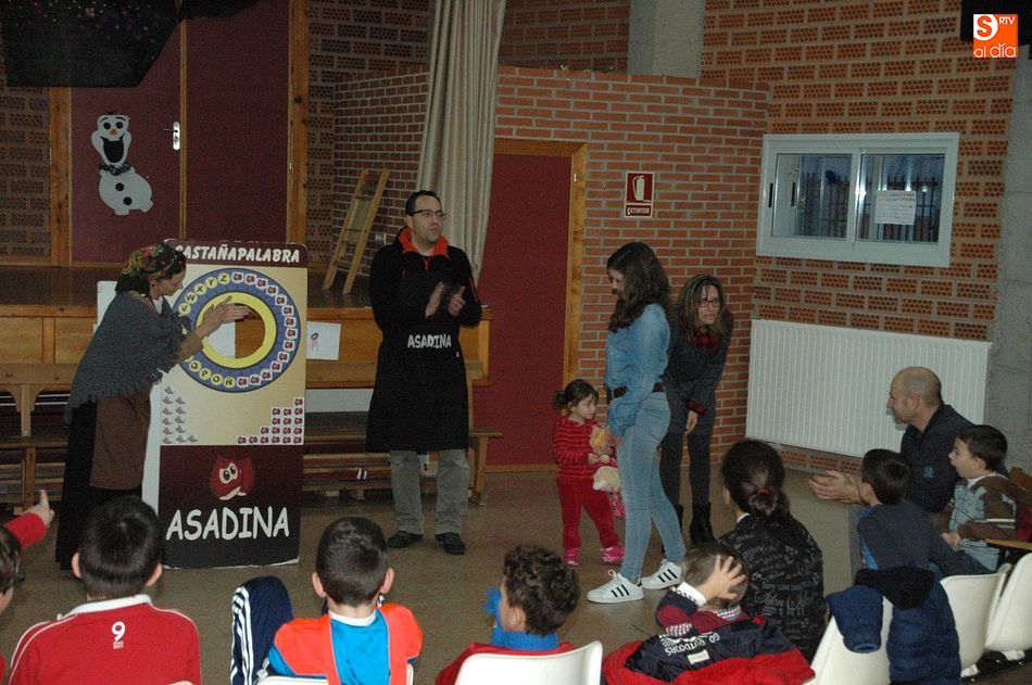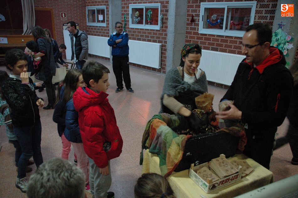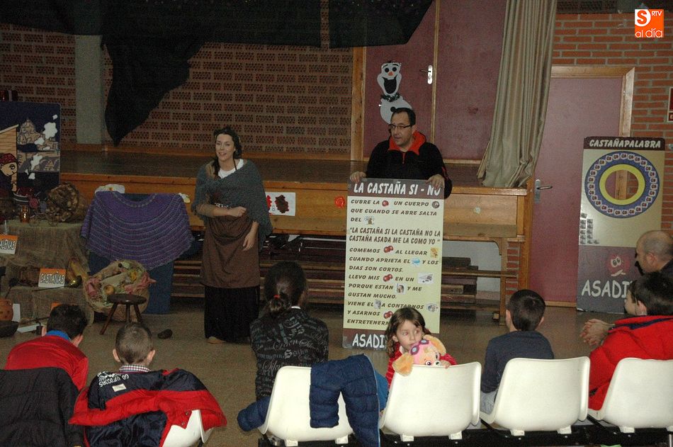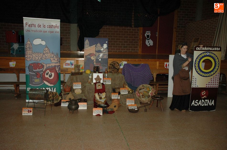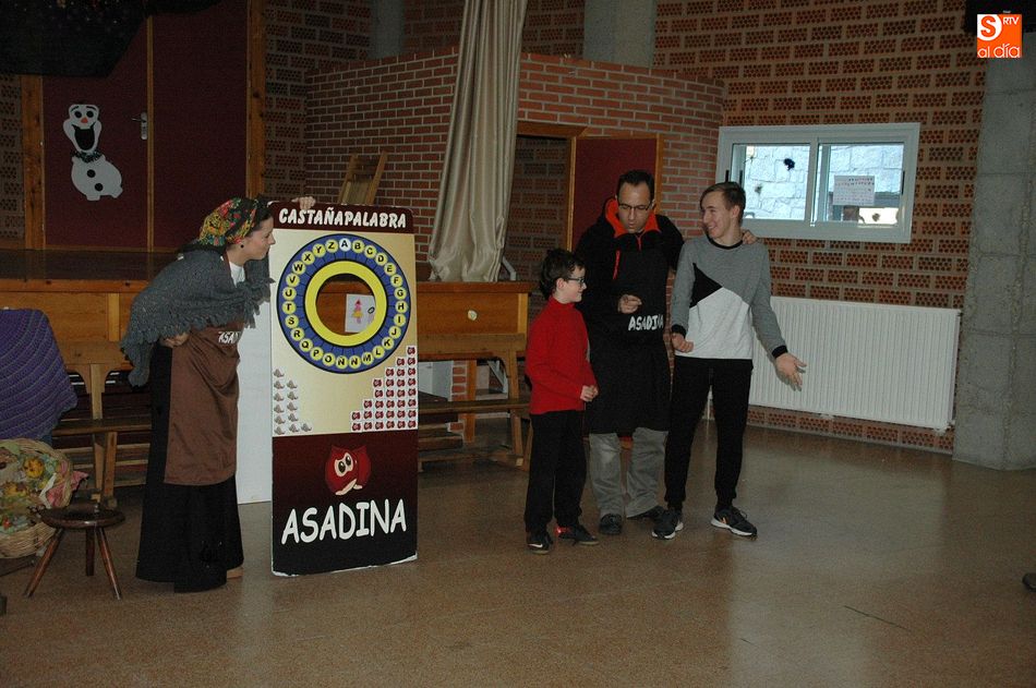 "Asadina, la castaña Salmantina", fue la encargada de hacer que esta sea una jornada inolvidable, actividad que se desarrolló con talleres y juegos. Además de dar una charla explicativa de la castaña, desde donde viene, su consumo y los utensilios y productos relacionados con este fruto tradicional de estos meses de invierno, se pasó luego a repartir entre los asistentes las ricas y calentitas castañas que se habían estado asando al calor de la lumbre.
