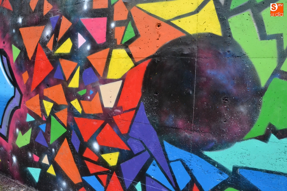 Como remate de esa Academia, se estuvo creando durante la jornada del sábado un mural de ambientación espacial en un muro situado en el camino de las higueras que conecta la Peña del Sastre con la Avenida de La Concha.