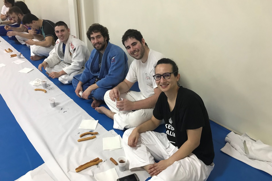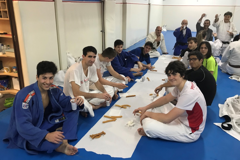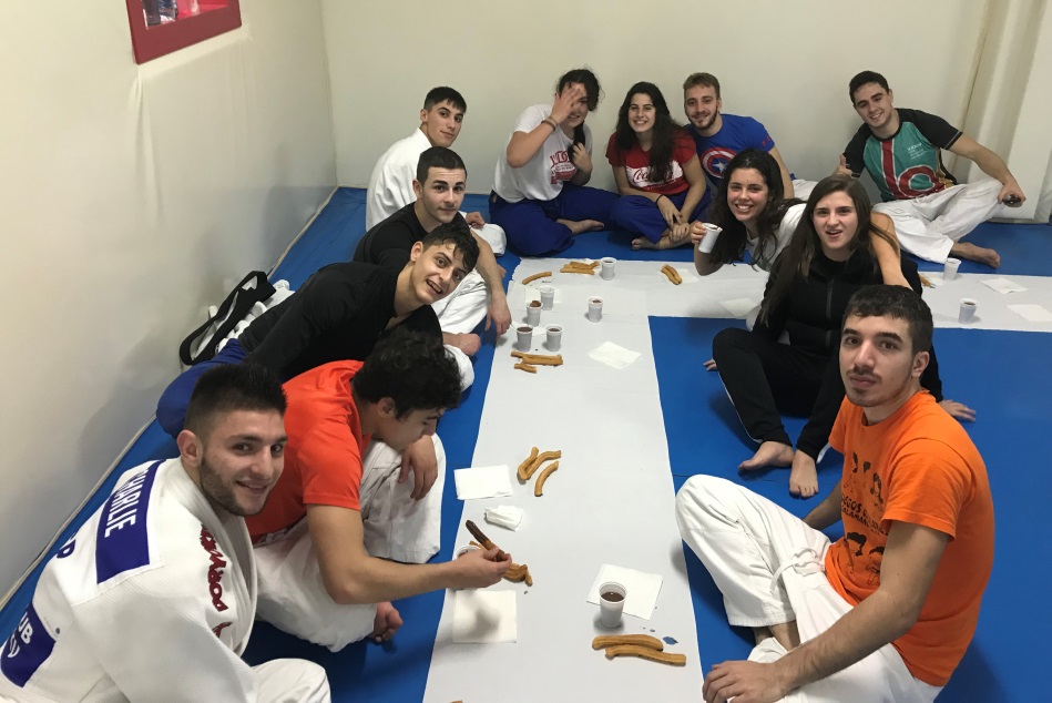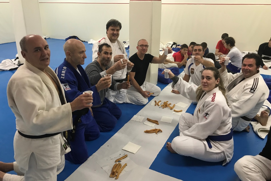 No sólo acudieron los que día a día entrenan en el Dojo, sino que también acudieron antiguos alumnos que por un motivo u otro ya no pueden seguir disfrutando de nuestro deporte. Un año más el entrenamiento finalizó con el desayuno de chocolate con churros de la Churrería Salamanca.