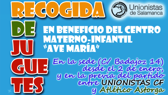 Unionistas de Salamanca CF está realizando durante toda esta semana una recogida de juguetes en beneficio del centro materno-infantil "Ave María".