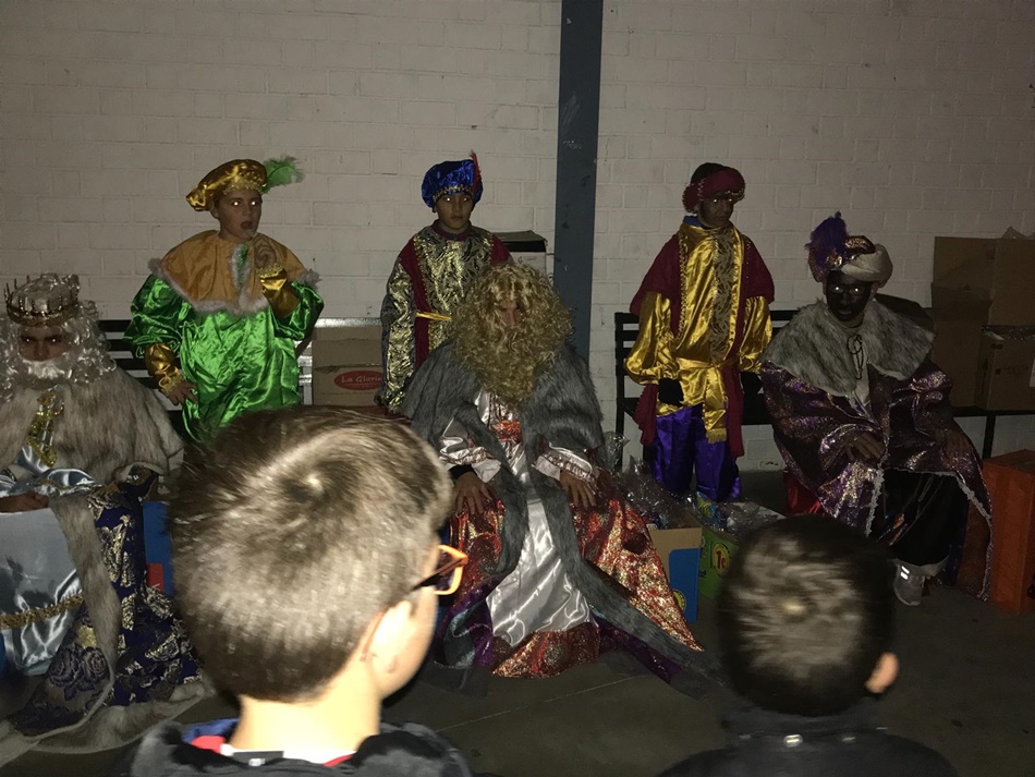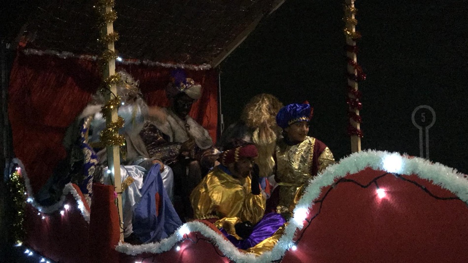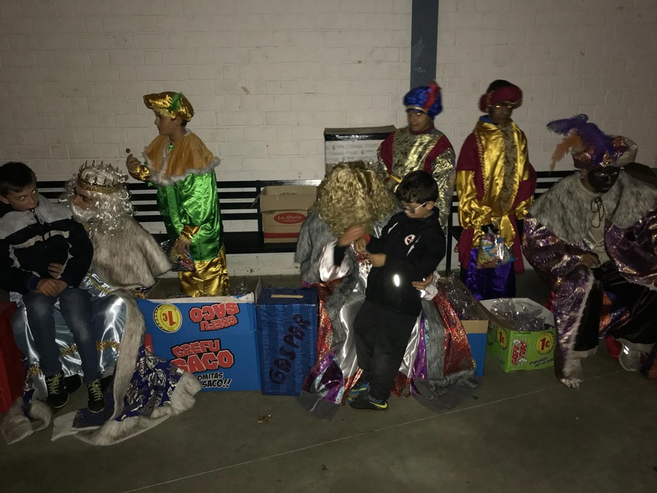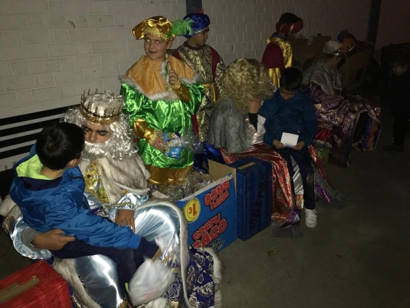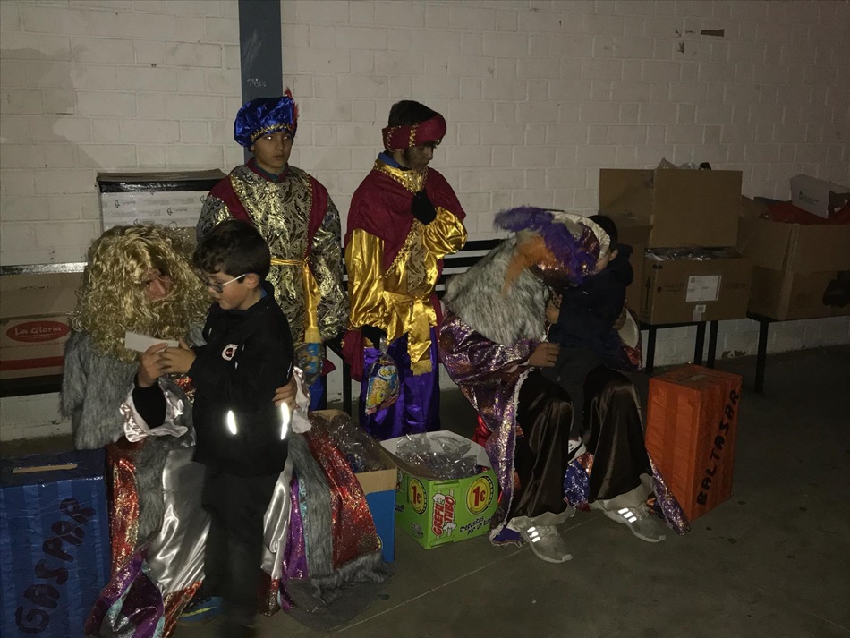 es. La lluvia ha obligado a realizar la cabalgata dentro del pabellón, donde los Reyes Magos y sus pajes han lanzado caramelos desde su carroza.