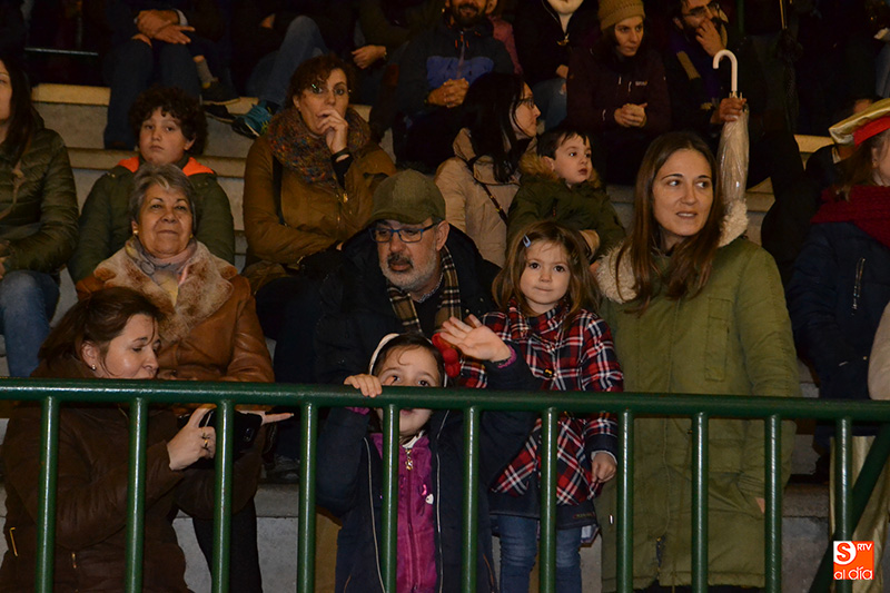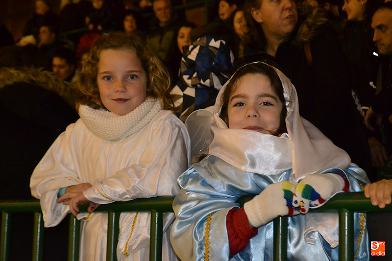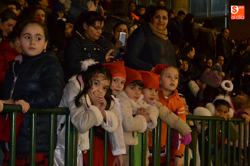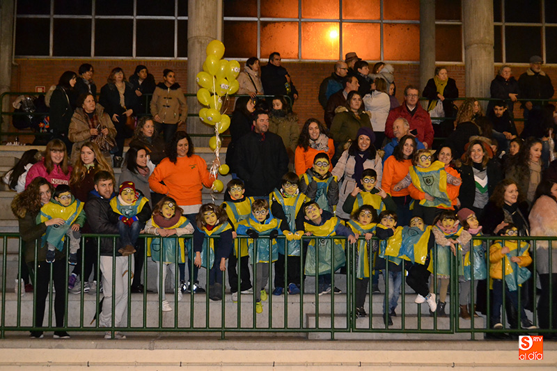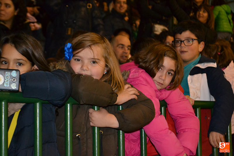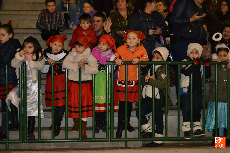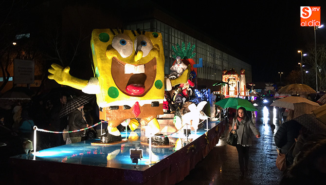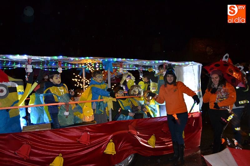 Tras este emotivo momento comenzaba la Cabalgata, la más numerosa en cuanto a participantes y en número de carrozas, compuesta por tres carrozas que representaban a cada una de las tres Ampas de los colegios de primaria de la ciudad (con motivos como Bob Esponja, un castillo oriental o un gran cisne), un vehículo del Parque Comarcal de Bomberos de la ciudad, un original autobús clásico perteneciente a Viajes Toursan,y las sorpresas aportadas por empresas como Animaciones Karikatura y el Centro Integral Deportivo que desfilaban junto a los pequeños que han participado en las actividades que han organizado durante estas navidades.
