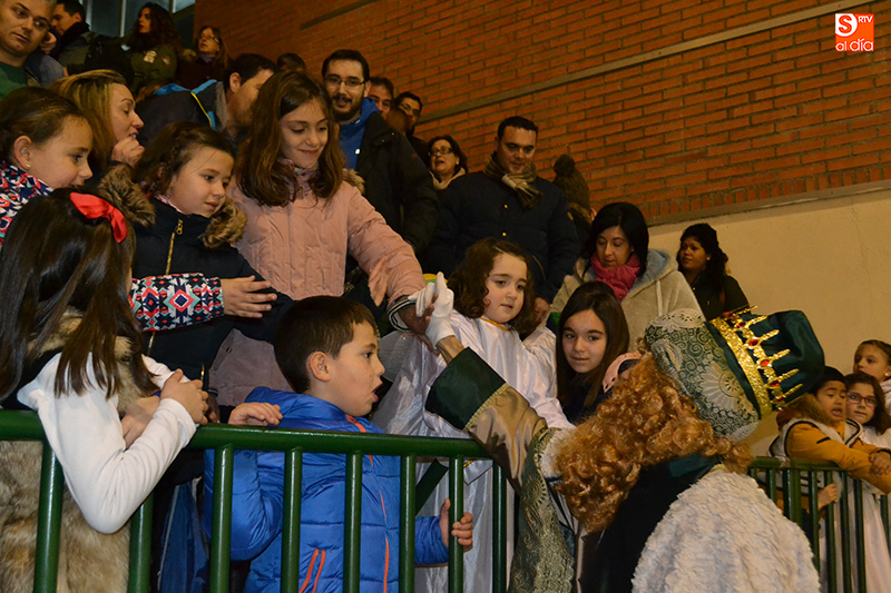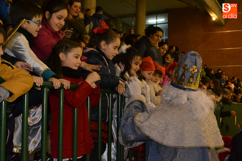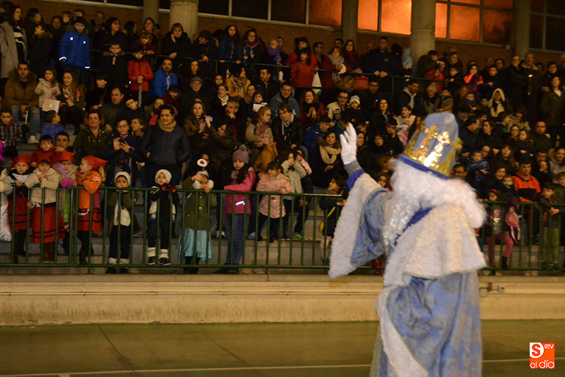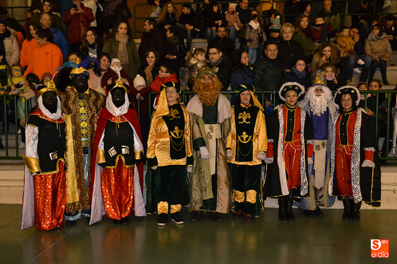 Una celebración que comenzaba el pabellón municipal Miguel Ángel Jiménez Barcala, epicentro de la actividad más intensa del programa, con Melchor, Gaspar y Baltasar como protagonistas, haciendo aparición en la pista del recinto pasadas las siete y media de la tarde para iniciar un recorrido por unas gradas que finalmente se quedaban pequeñas para vivir el que sin duda era uno de los momentos más esperados del año para grandes y pequeños.