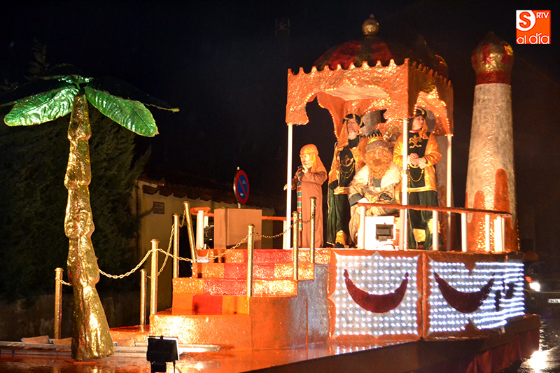 El cortejo al completo, aunque con menor presencia infantil en las carrozas debido a la lluvia, comenzaba su rápido recorrido desde la Avenida de los Jardines, para dirigirse hasta el Conjunto Histórico de las Tres Plazas, repartiendo durante el trayecto varios cientos de kilos de caramelos al público que, a pesar de la desapacible tarde, arropaba la Cabalgata hasta el final de su itinerario.