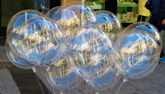 En la luz y transparencia de estos globos, en el fulgor que desprenden, en las imágenes irisadas que recogen en su superficie y desprenden para entregar a nuestros ojos, en todo ello se encuentra la magia del mundo, que nos lleva a la niñez, a la ensoñación de un tiempo mítico del que todos, en los primeros años de nuestras vidas, hemos participado.
