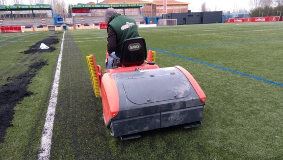 Para ello se ha realizado una descompactación de césped artificial con un cepillado realizado en ambos sentidos y con un aspirado de fibra para eliminar la suciedad. A continuación, se ha realizado un recebado del césped con caucho, para el que se han utilizado 12.000 kilogramos.