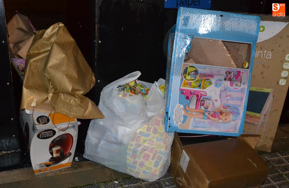 Así por ejemplo, en la tarde del domingo se podían ver en Ciudad Rodrigo unas cuantas cajas vacías al lado de varios contenedores de reciclado de papel y cartón, que ya estaban llenos. Además de cajas de juguetes, se podían ver cajas de regalos 'de adultos', como una máquina de café, o papeles en los que estaban envueltos esos regalos.