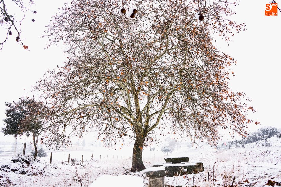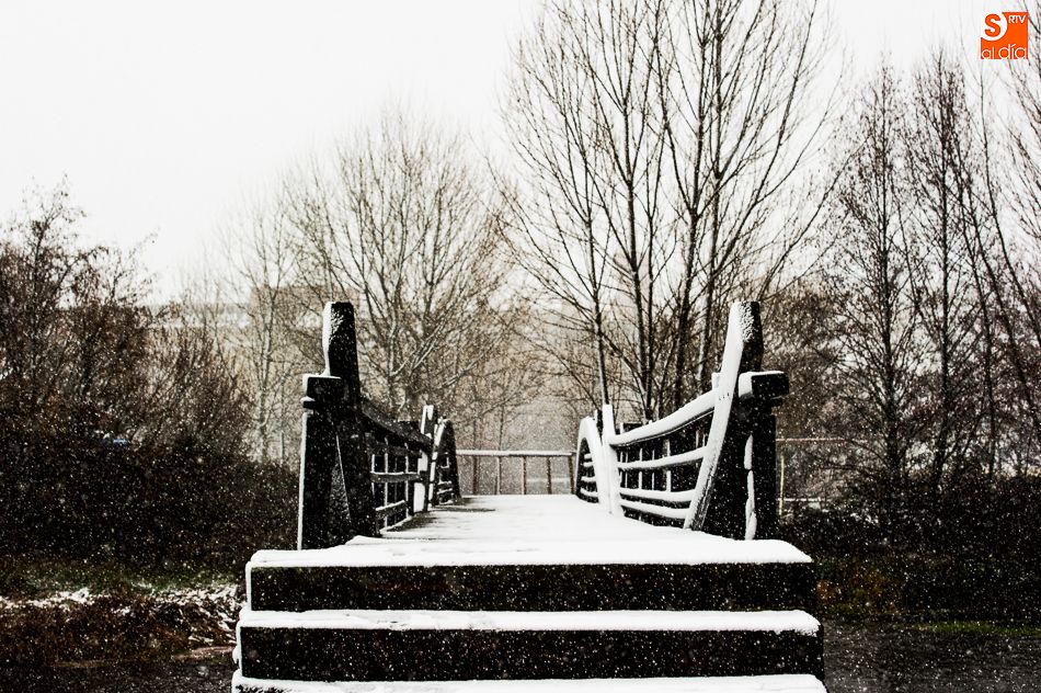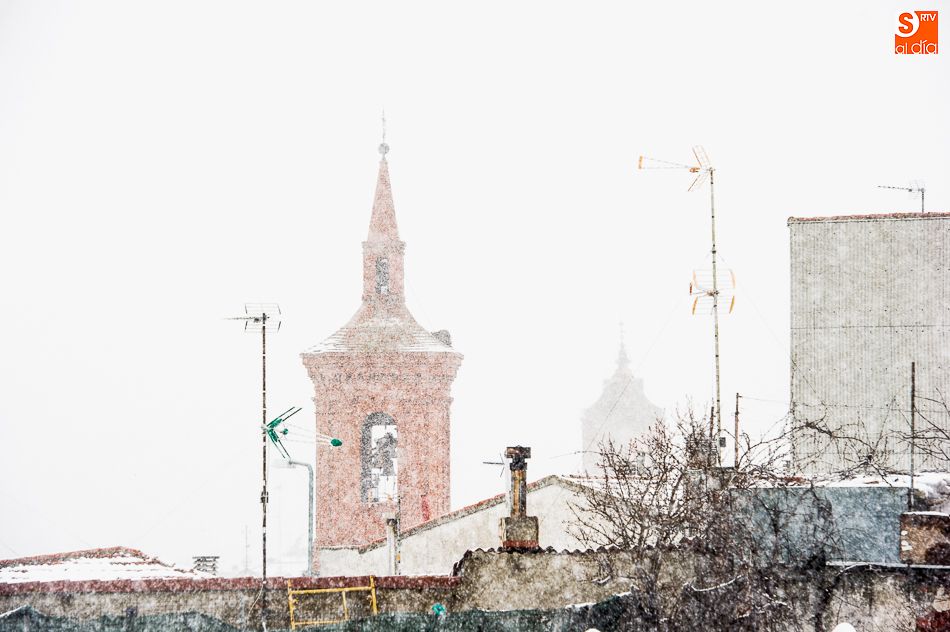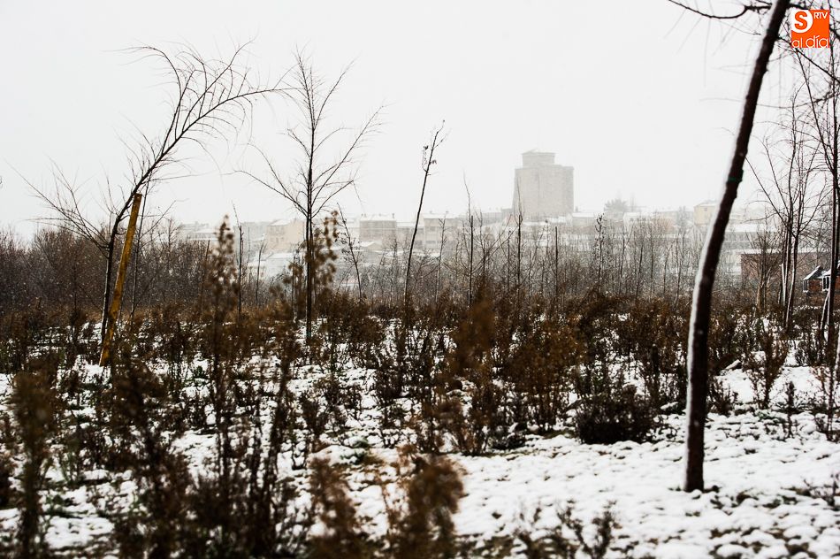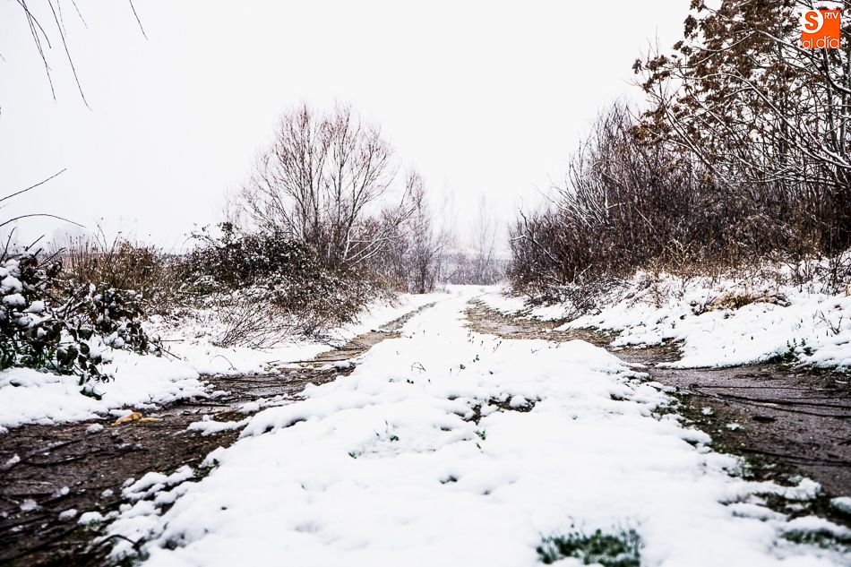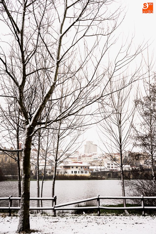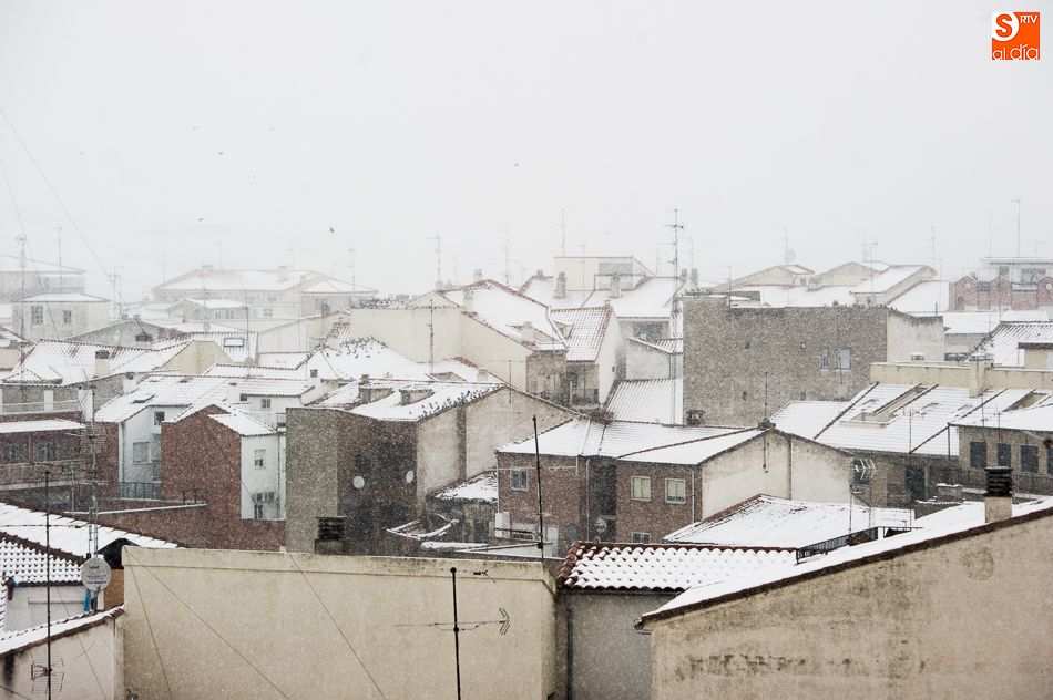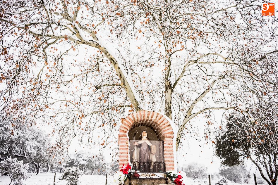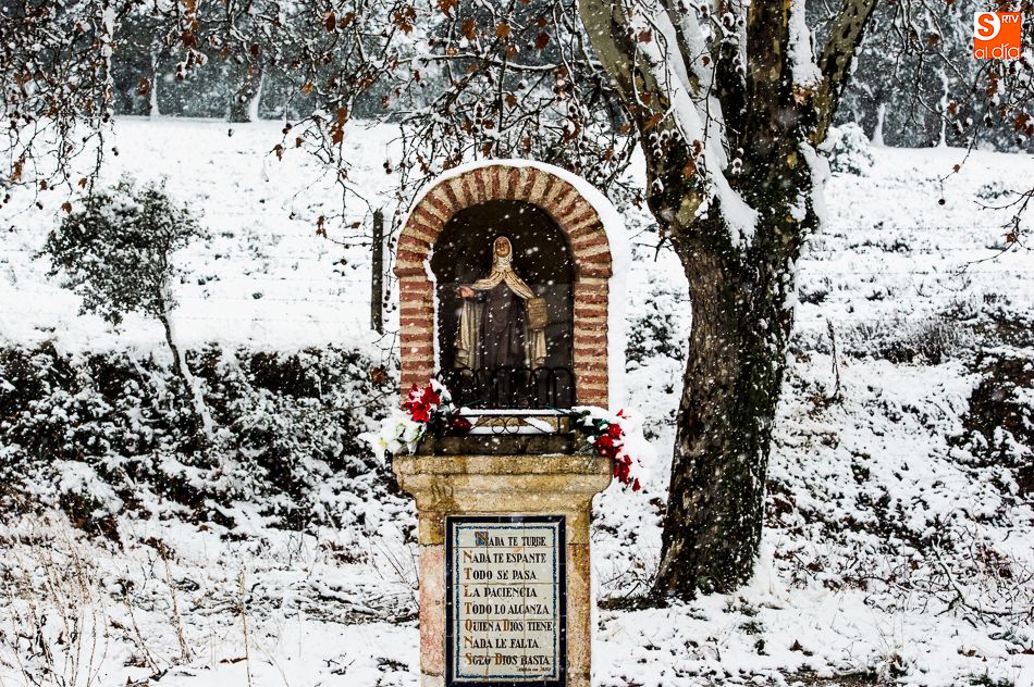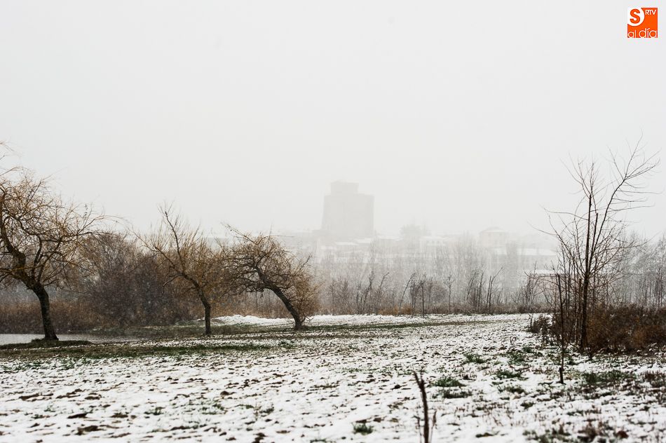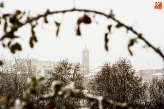 La nieve llega a Alba de Tormes y ha comenzado a dibujar un manto blanco en las calles y rincones de la ciudad