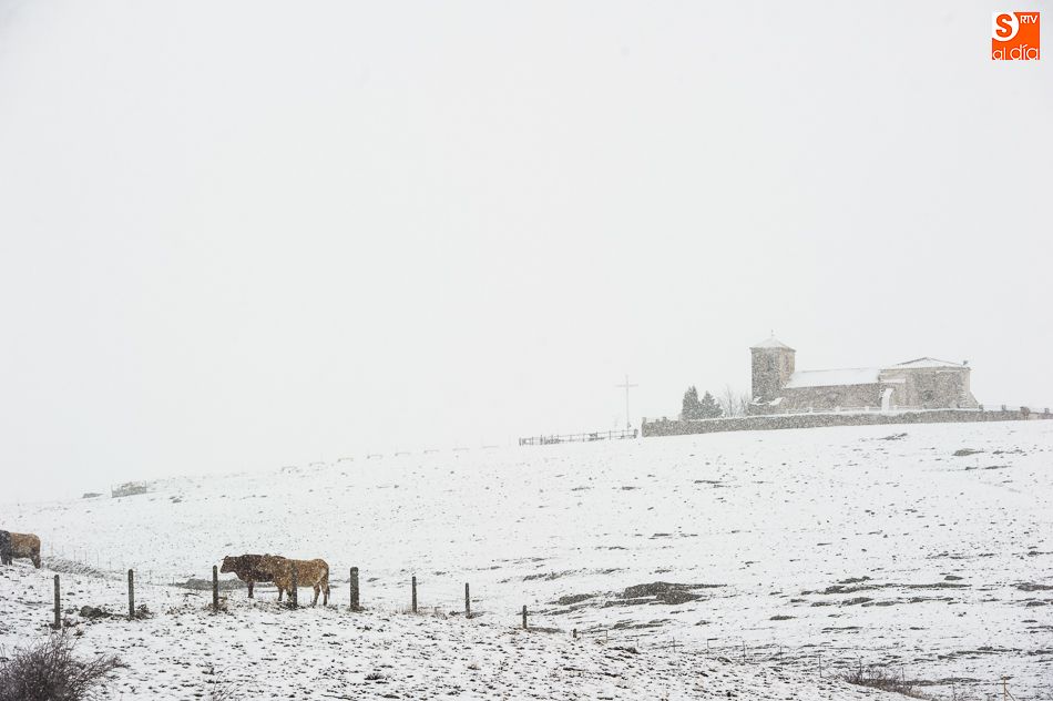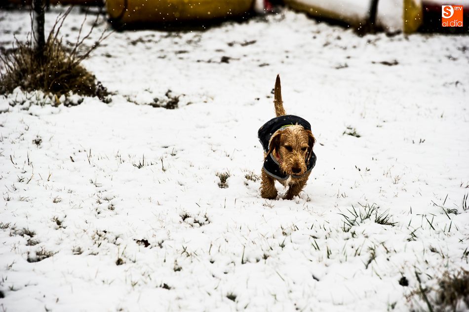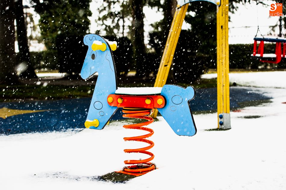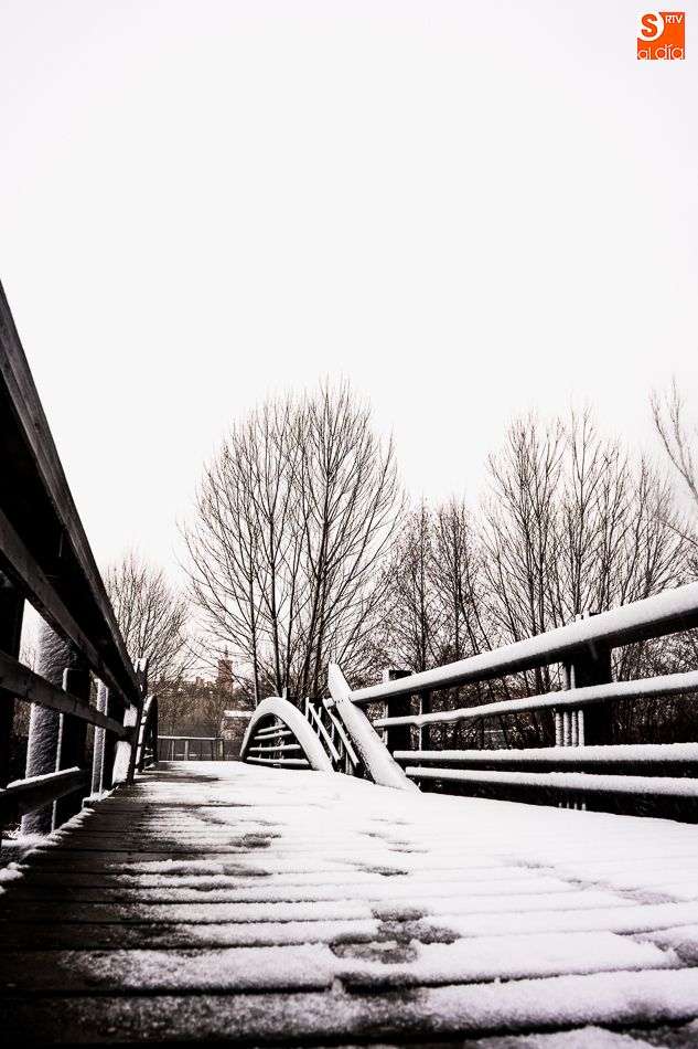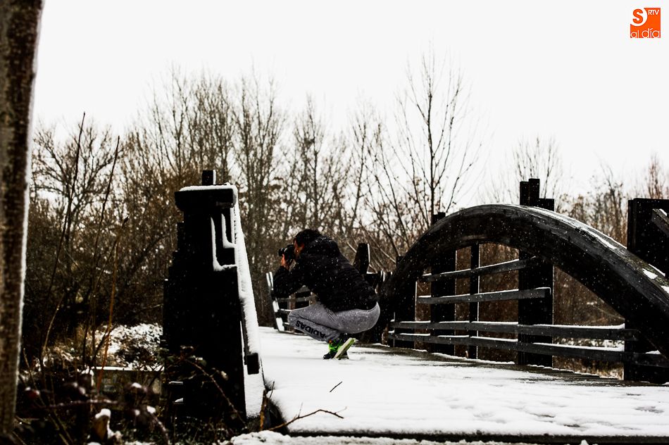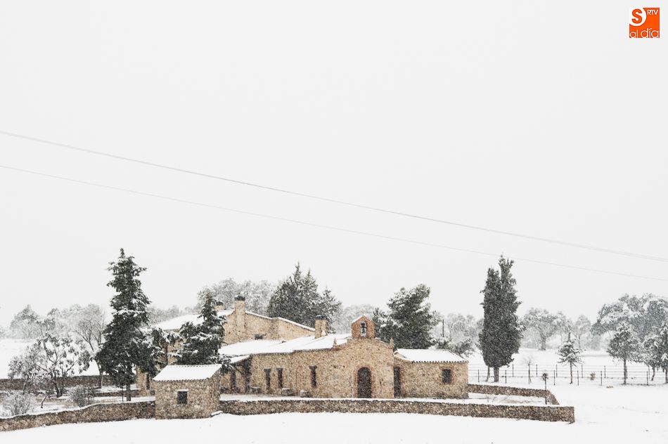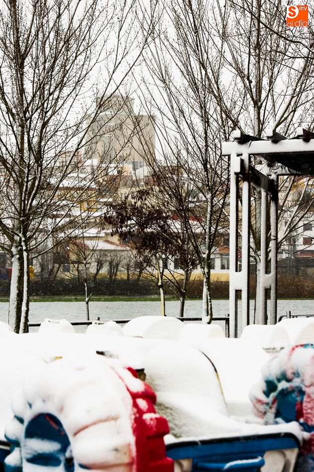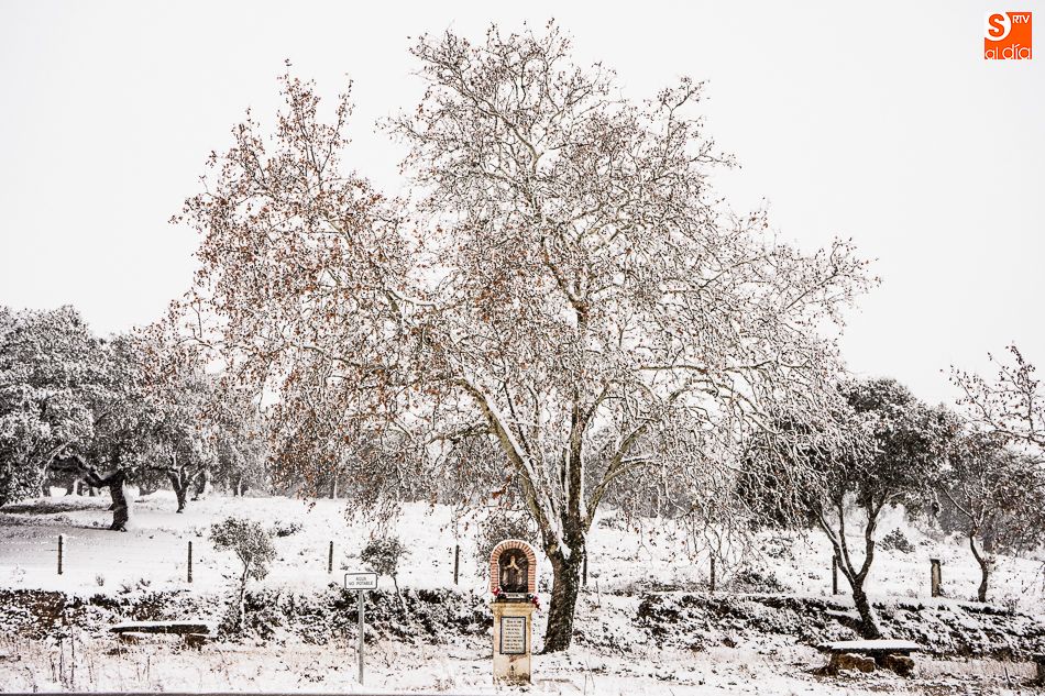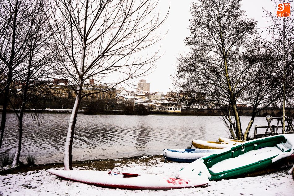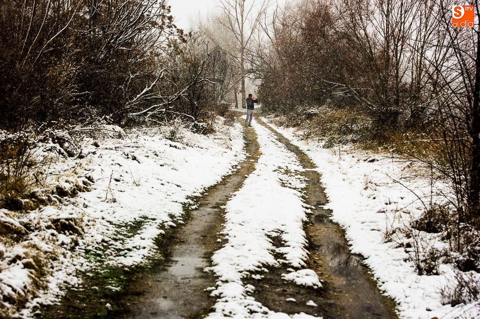 La nieve llega a Alba de Tormes y ha comenzado a dibujar un manto blanco en las calles y rincones de la ciudad
