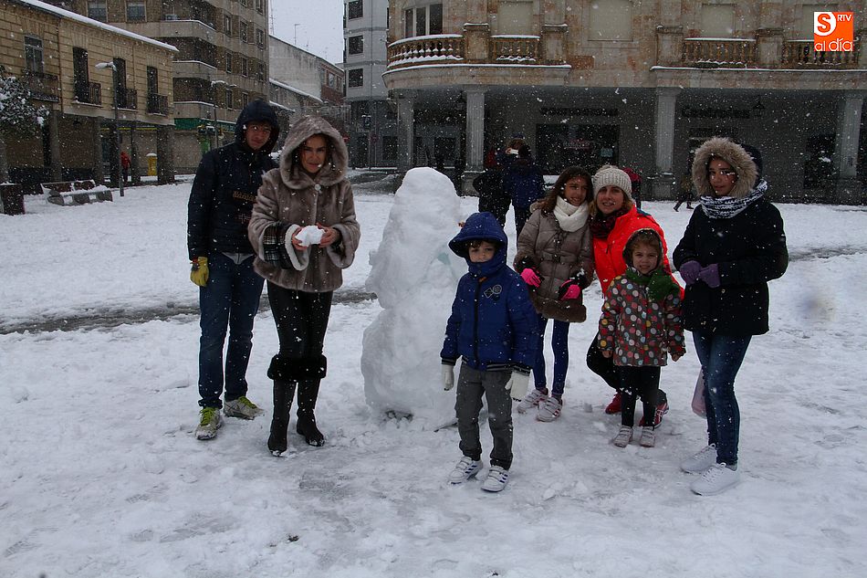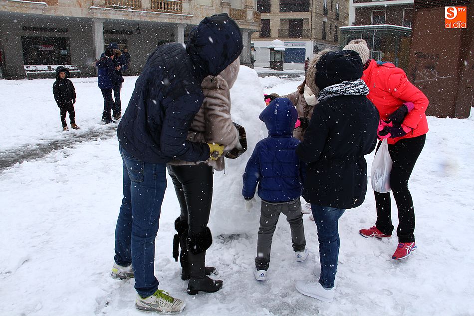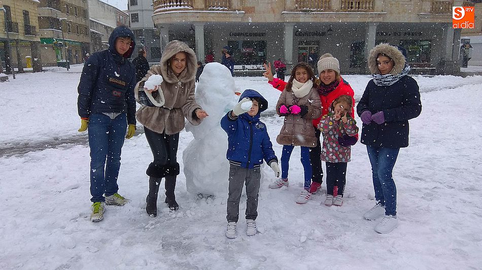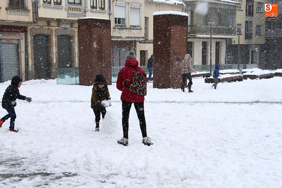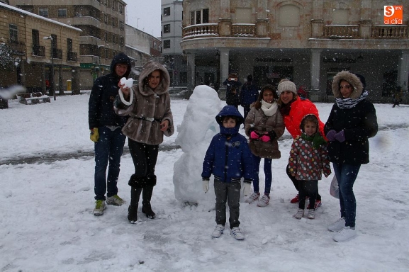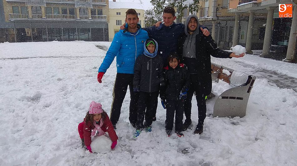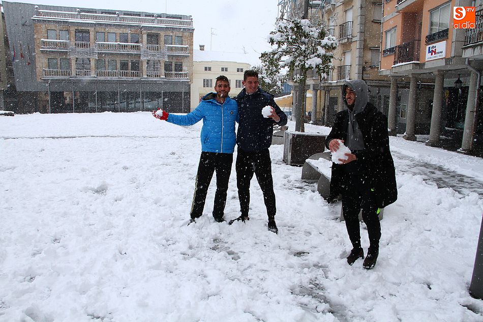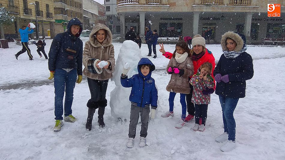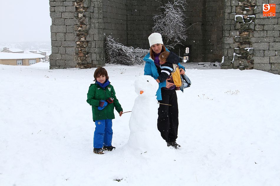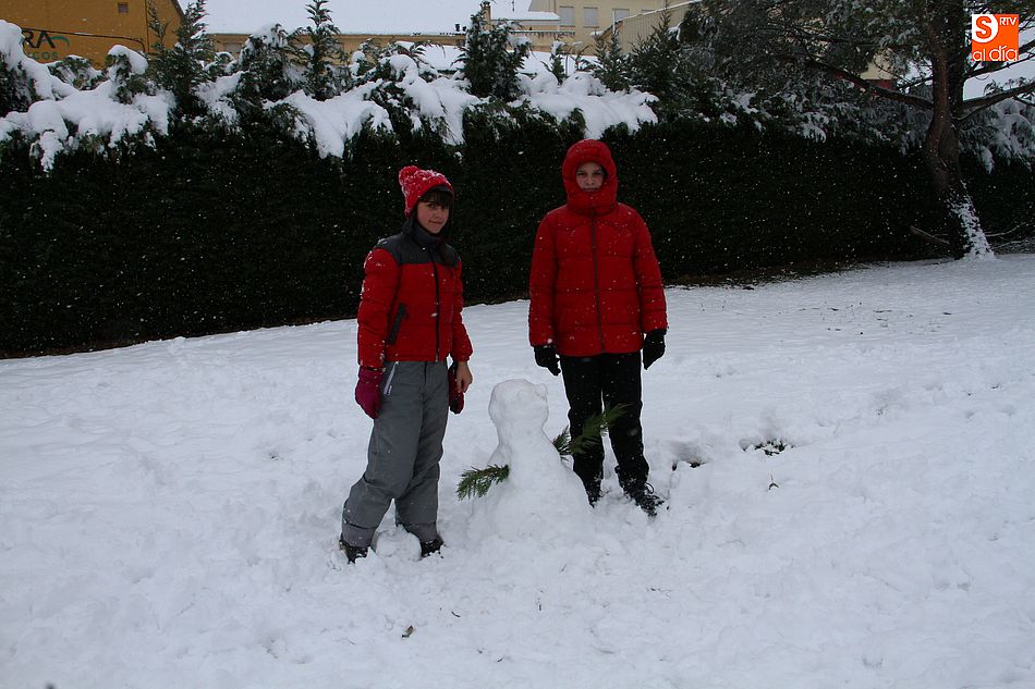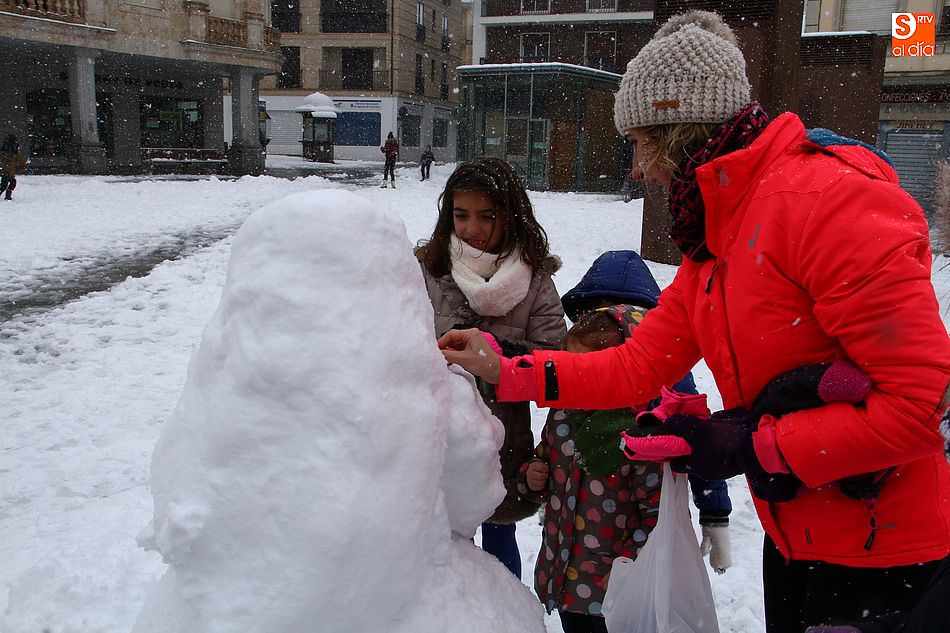 an llenado parques y plazas de muñecos de nieve, viéndose ejemplares en el parque de El Pozuelo, la plaza Mayor, el barrio de San José o el alto de Campillo. Además, la constante nevada ha invitado a algunos a disfrutar de divertidas guerras de bolas de nieve, como algunos de los jugadores del Club Deportivo Guijuelo, que al ver su partido de fútbol contra el Rápido de Bouzas suspendido, se acercaron hasta la plaza para jugar con los niños de la villa. Sin olvidar a aquellos que lo han pasado bien con plásticos o trineos deslizándose por las cuestas de la villa.