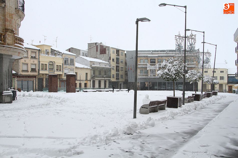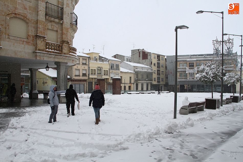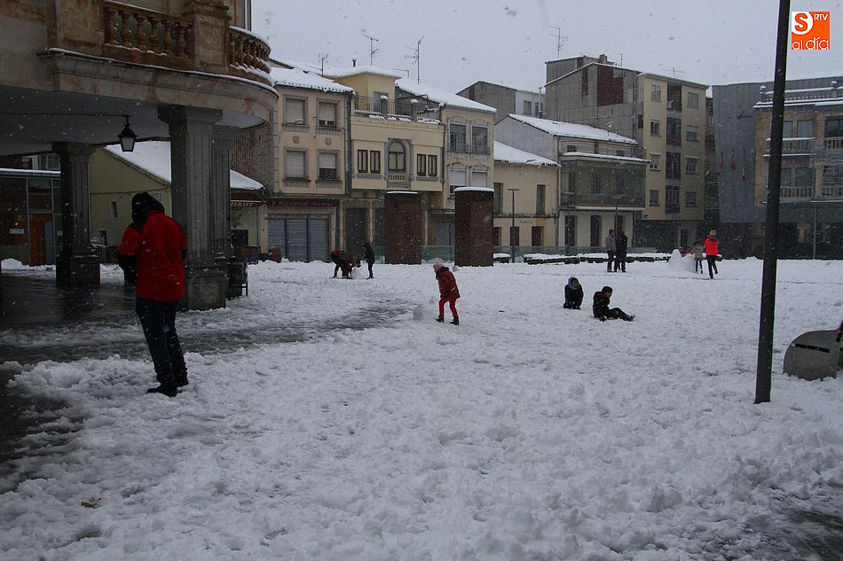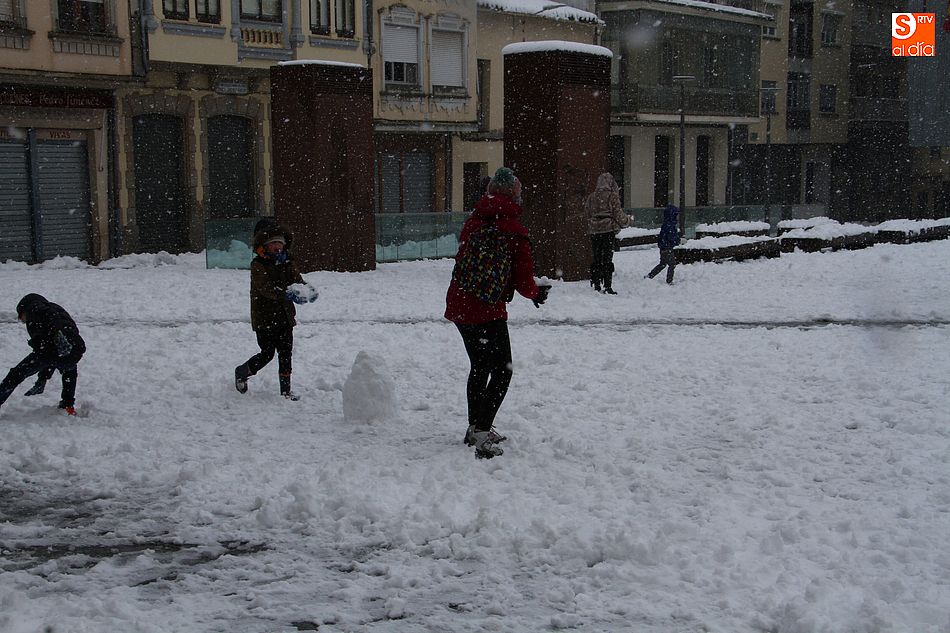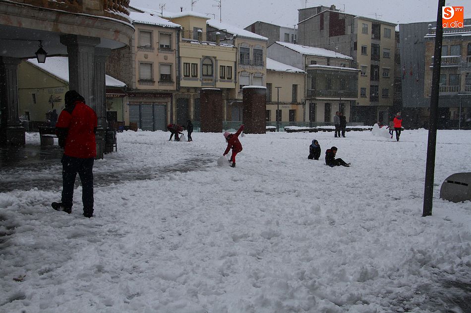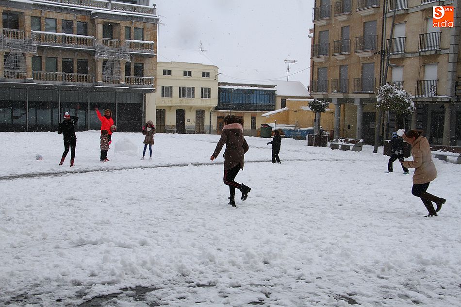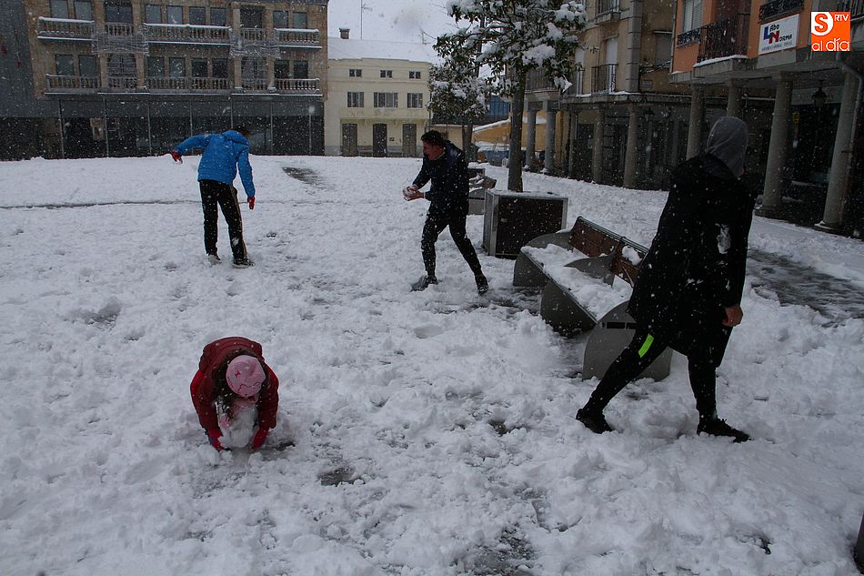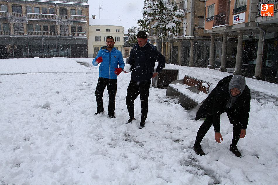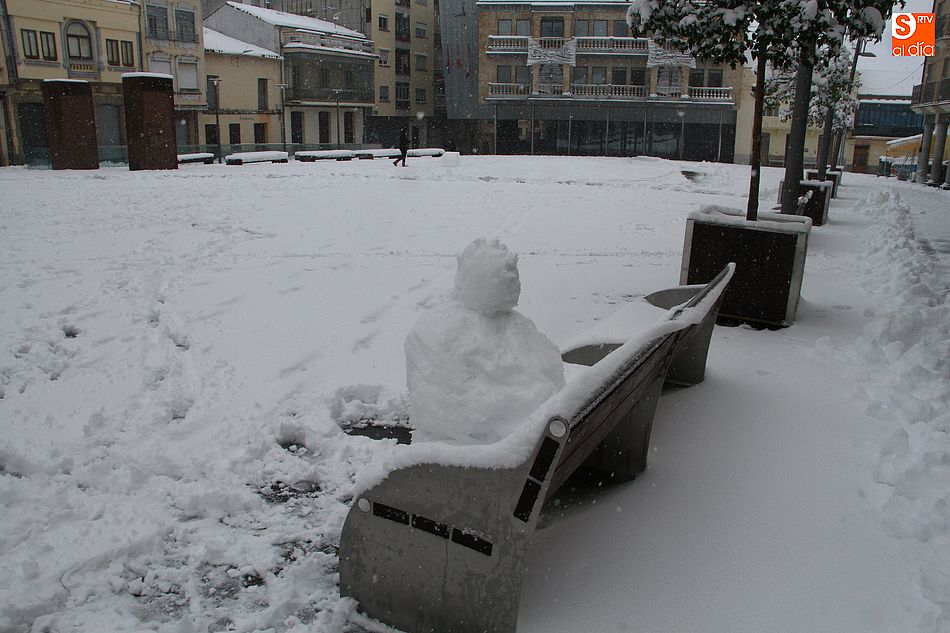 an llenado parques y plazas de muñecos de nieve, viéndose ejemplares en el parque de El Pozuelo, la plaza Mayor, el barrio de San José o el alto de Campillo. Además, la constante nevada ha invitado a algunos a disfrutar de divertidas guerras de bolas de nieve, como algunos de los jugadores del Club Deportivo Guijuelo, que al ver su partido de fútbol contra el Rápido de Bouzas suspendido, se acercaron hasta la plaza para jugar con los niños de la villa. Sin olvidar a aquellos que lo han pasado bien con plásticos o trineos deslizándose por las cuestas de la villa.