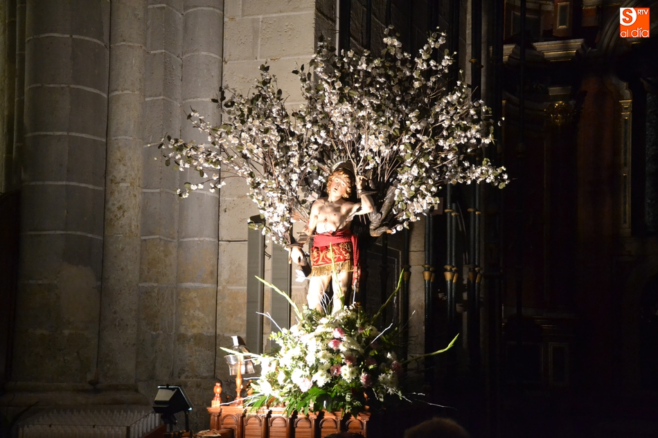 La Catedral de Santa María vivió en la tarde del jueves la primera jornada de la tradicional novena en honor al patrón de Ciudad Rodrigo, San Sebastián, cuya imagen está en la Seo mirobrigense desde el pasado domingo, cuando fue subida en procesión desde la Iglesia de San Cristóbal.