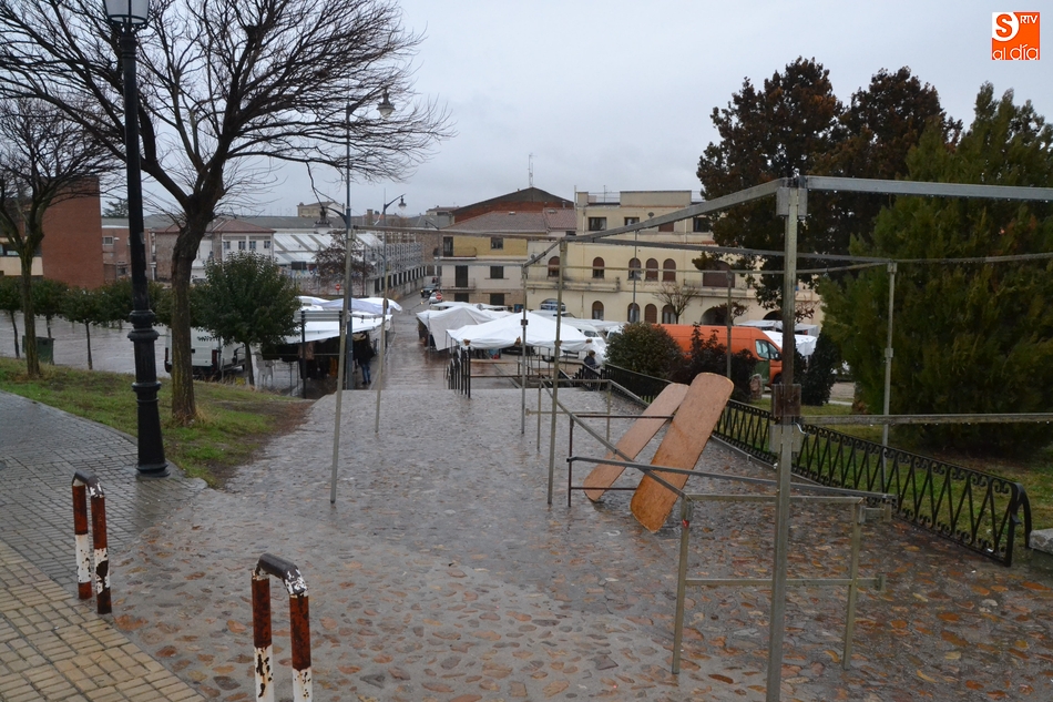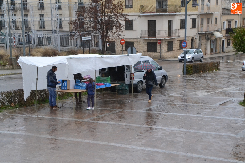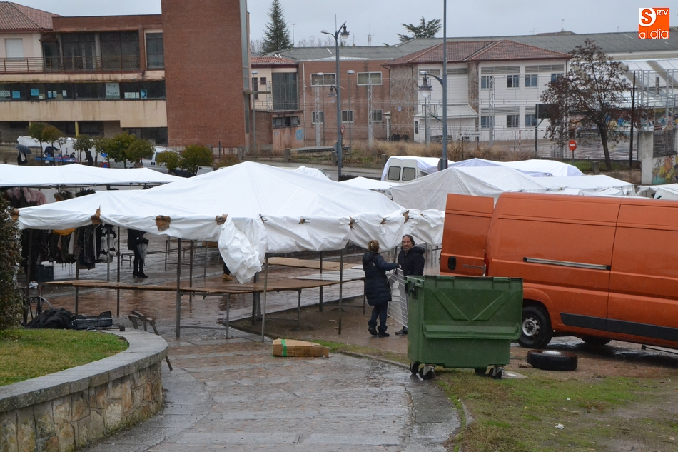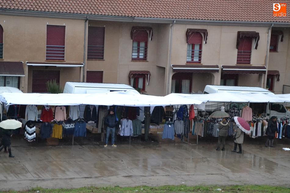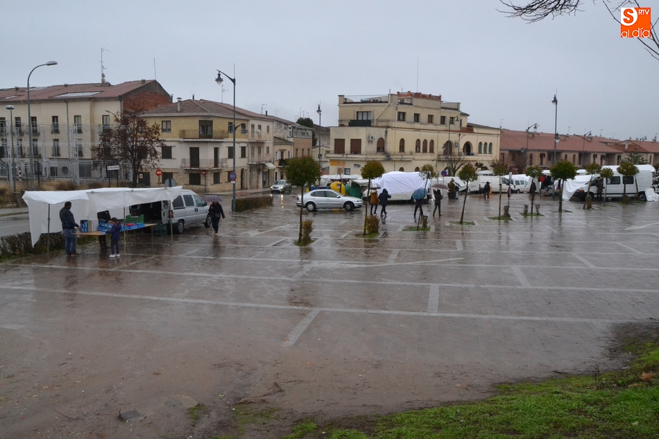 Después de que el primer sábado del año coincidiera con el Día de Reyes (lo que hizo que no vinieran todos los puestos), el tradicional mercadillo sabatino de Ciudad Rodrigo tampoco se pudo desarrollar con normalidad en el segundo sábado del año, en este caso por culpa de la lluvia, que cayó durante buena parte de la mañana.