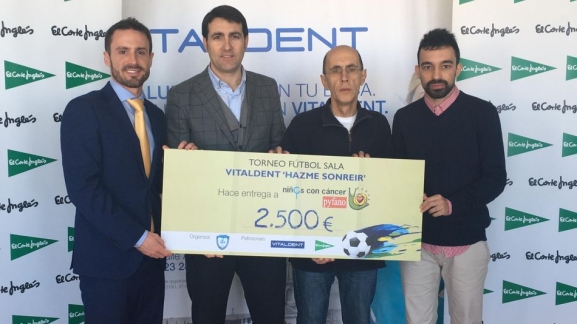 El Restaurante de El Corte Inglés ha acogido el acto de entrega a Pyfano (Asociación de Padres, Familiares y Amigos de Niños Oncológicos de Castilla y León) de la cantidad recaudada en la última edición del Torneo de fútbol sala base Vitaldent 'Hazme Sonreír'.