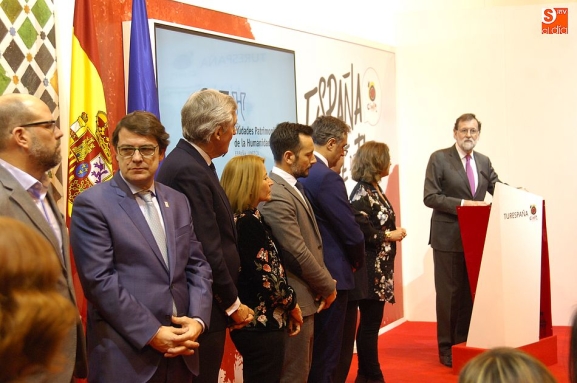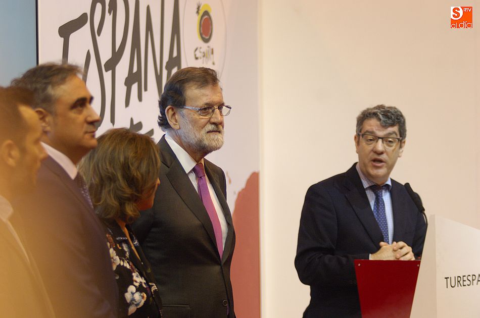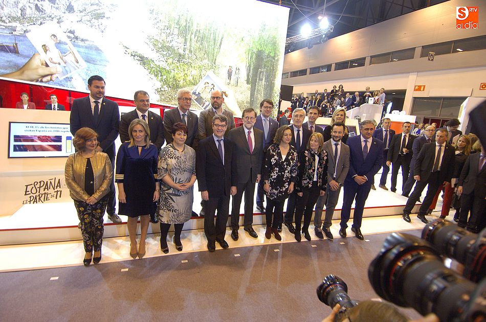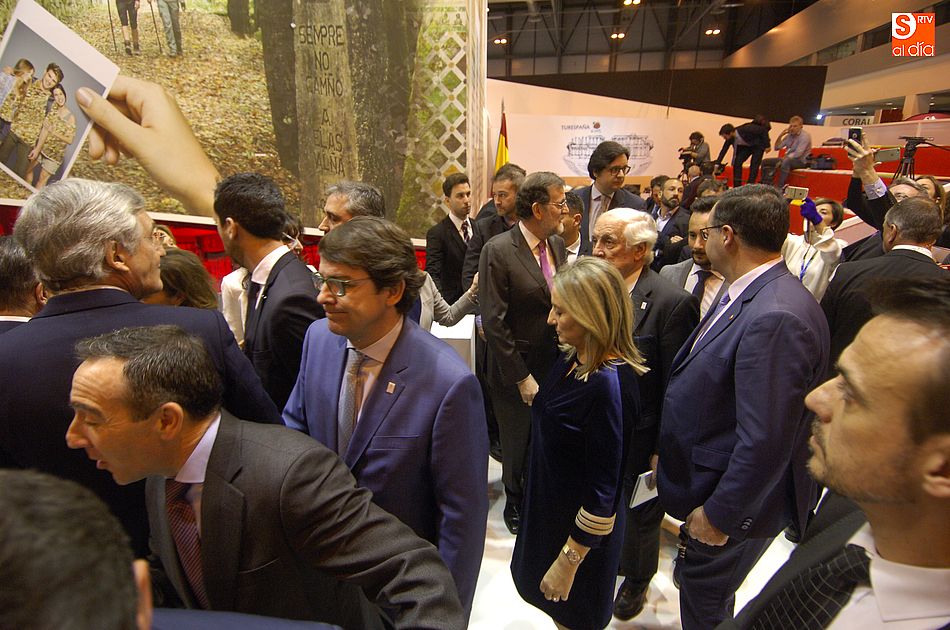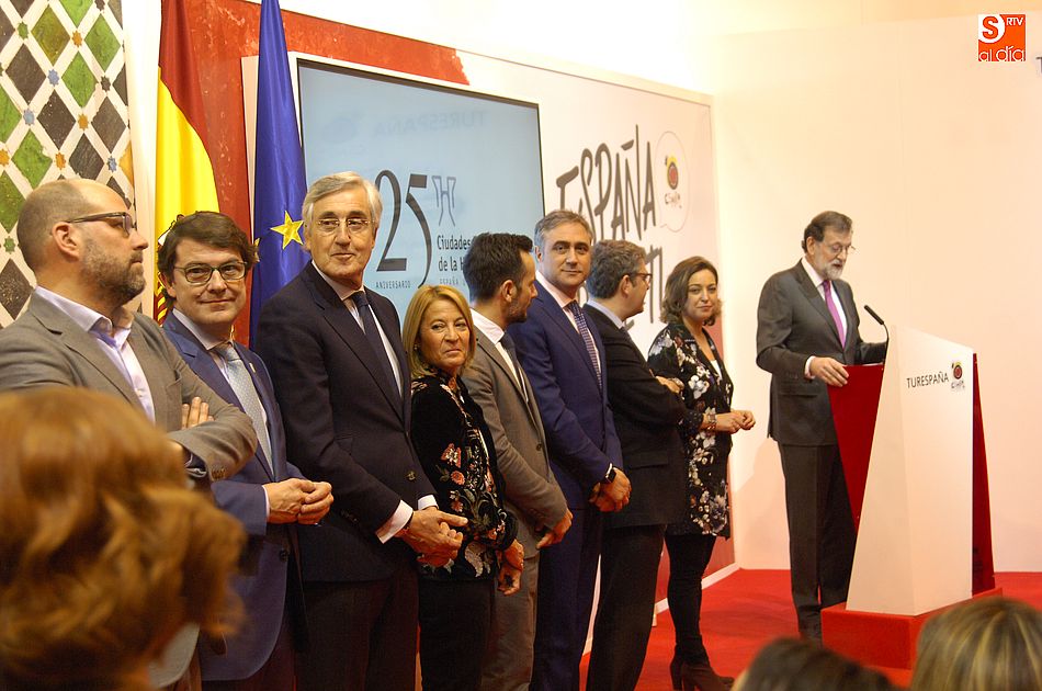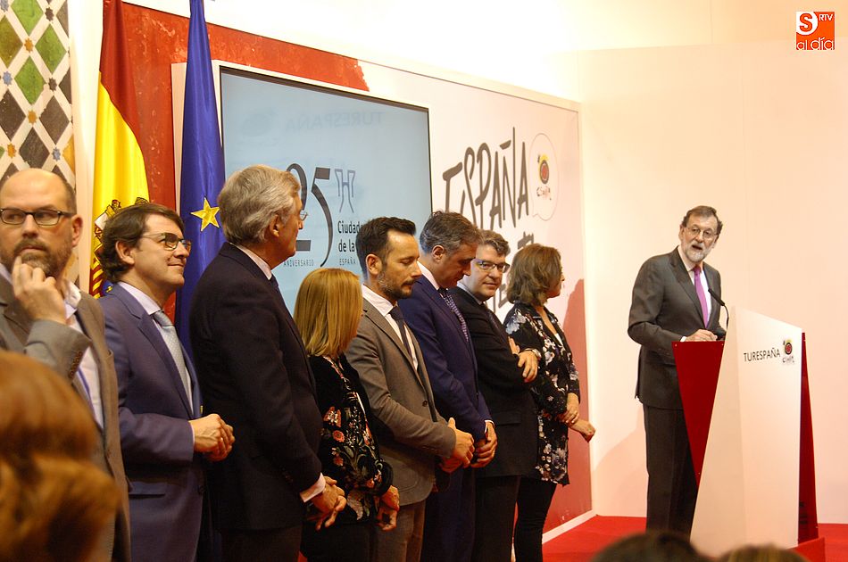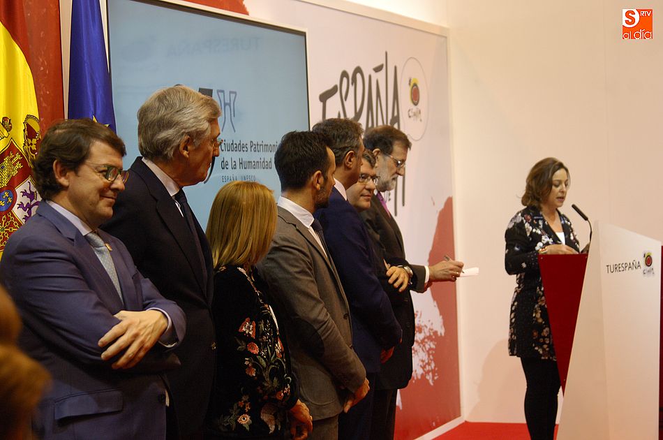 El presidente del Gobierno, Mariano Rajoy, ha visitado hoy FITUR en el acto de promoción de las Ciudades Patrimonio de la Humanidad. Al acto ha acudido también el alcalde de Salamanca, Alfonso Fernández Mañueco, tras asistir al acto de presentación de las actividades del VIII Centenario de la Universidad de Salamanca.