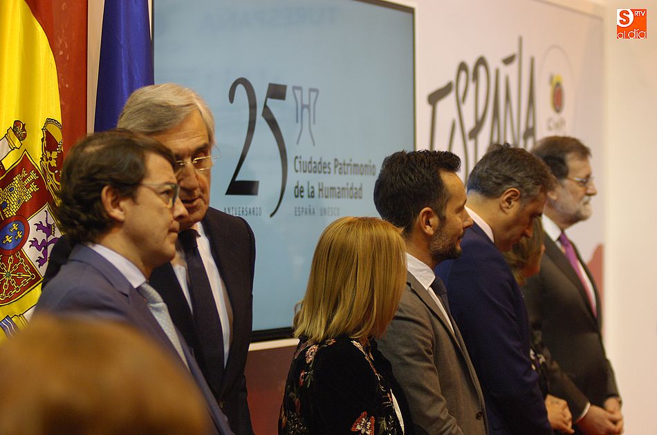 El presidente del Gobierno dedicó unas pocas palabras a cada una de las ciudades patrimonio, diciendo de la capital charra: "La ciudad renacentista española por excelencia, ciudad del conocimienot y del saber es hoy imán para universitarios que nos visitan".