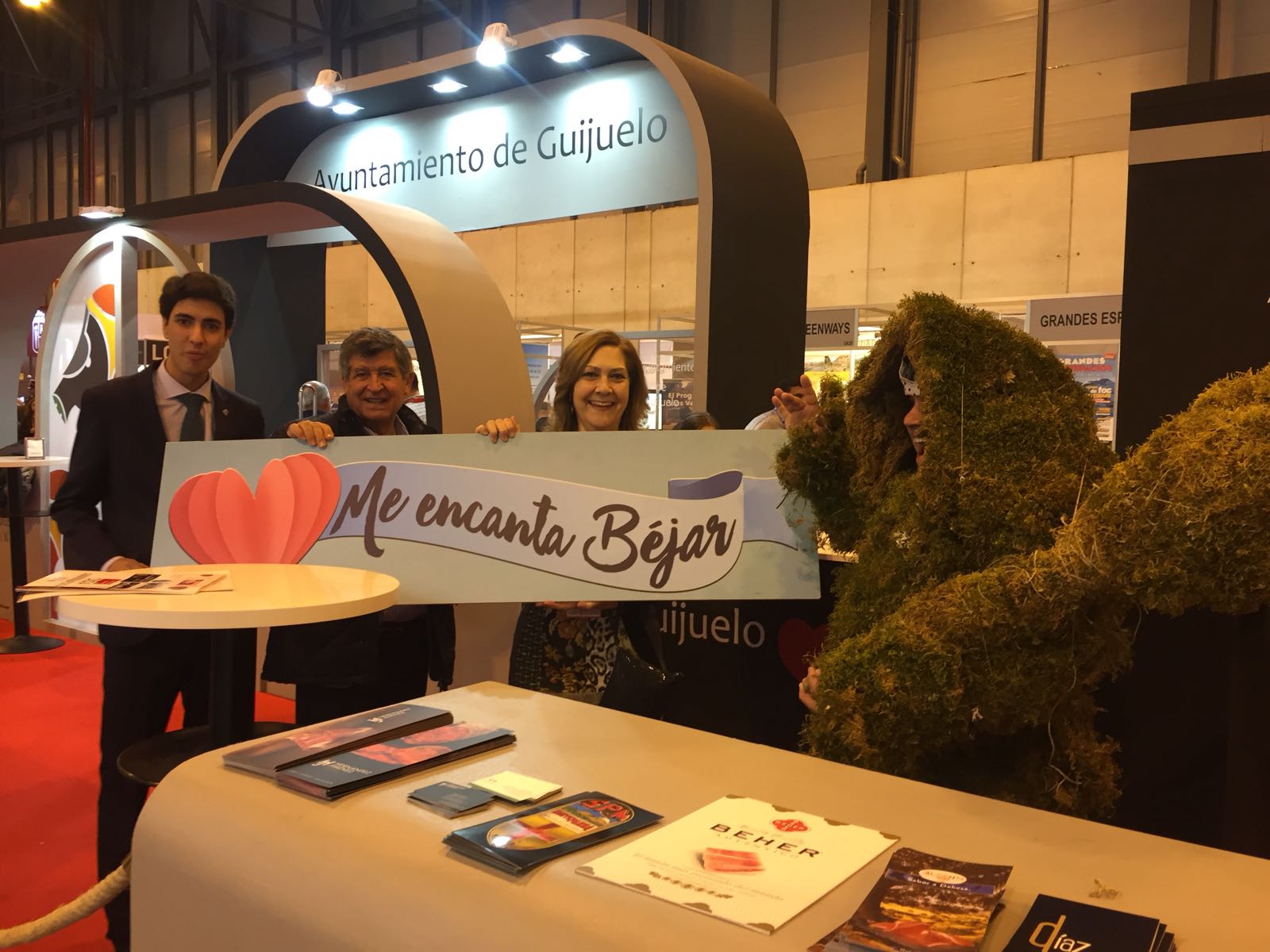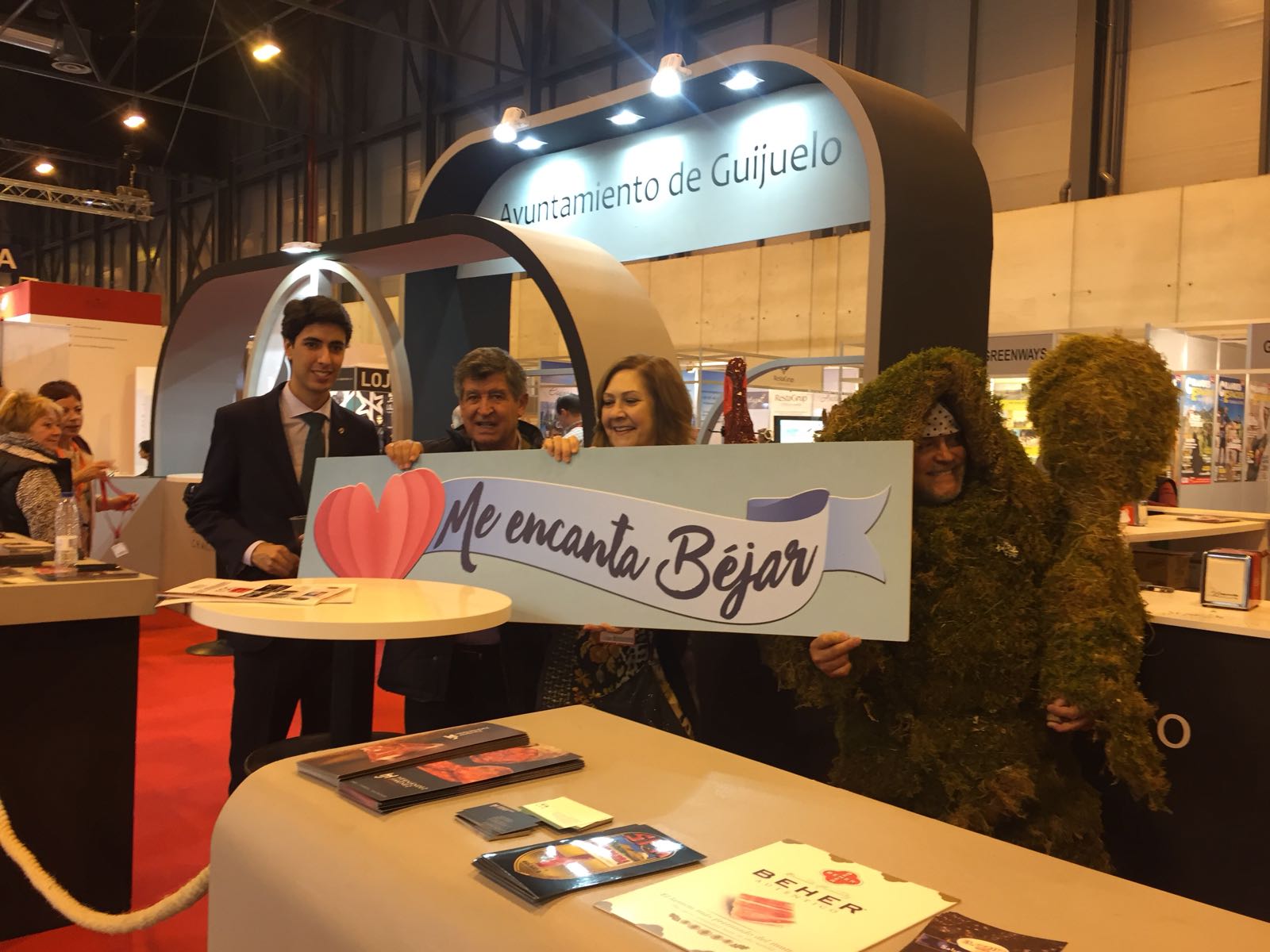 El stand municipal no dejó de recibir visitantes, algunos de ellos muy cercanos, como la comitiva de la ciudad de Béjar, en la que no faltaron los tradicionales hombres de musgo, uno de los mayores reclamos turísticos de la provincia.