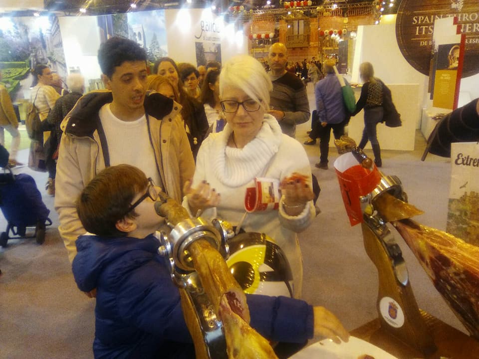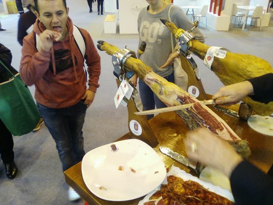La Feria Internacional de Turismo abrió ayer por fin al público en general que se acercó hasta el stand municipal para saborear un poco del mejor embajador de Guijuelo
