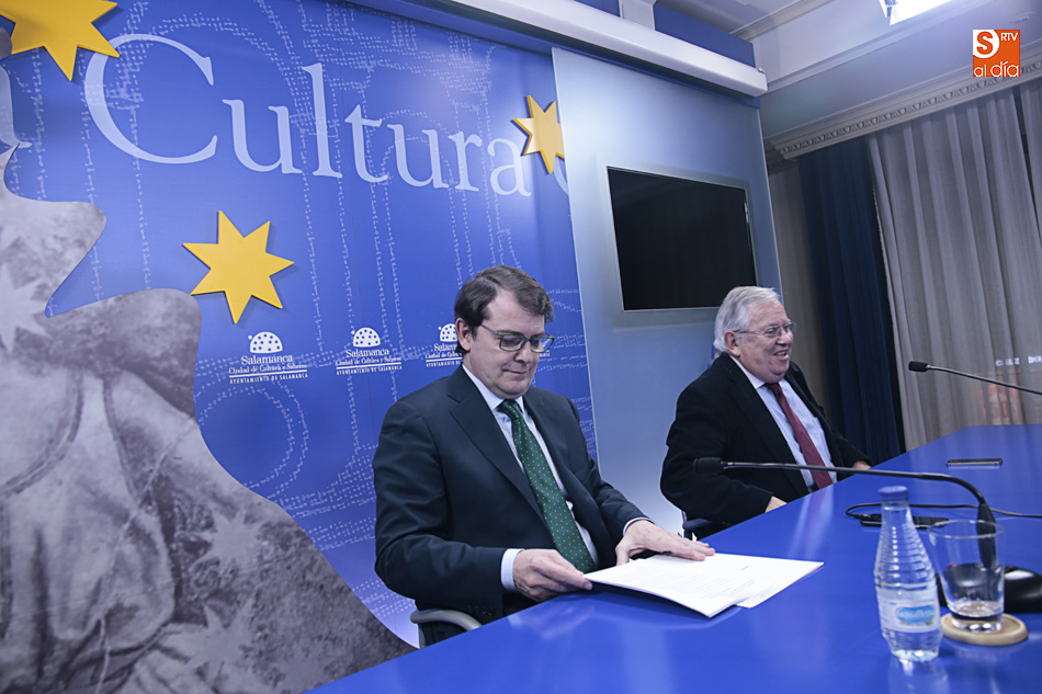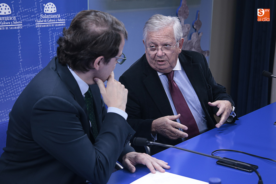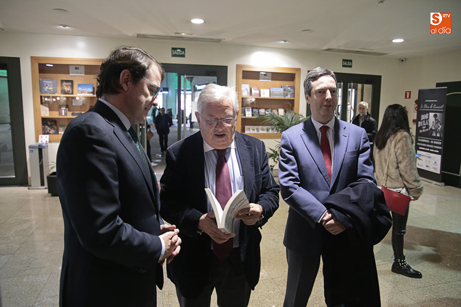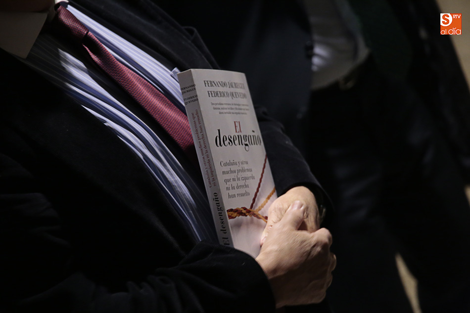 Los periodistas Fernando Jáuregui y Federico Quevedo presentaron en Salamanca su último libro, titulado 'El desengaño'. Ha sido este lunes, a las ocho de la tarde y la entrada al acto fue libre hasta completar el aforo. En el mismo estuvo el alcalde de Salamanca, Alfonso Fernández Mañueco, que acompañó a Fernando Jáuregui.
