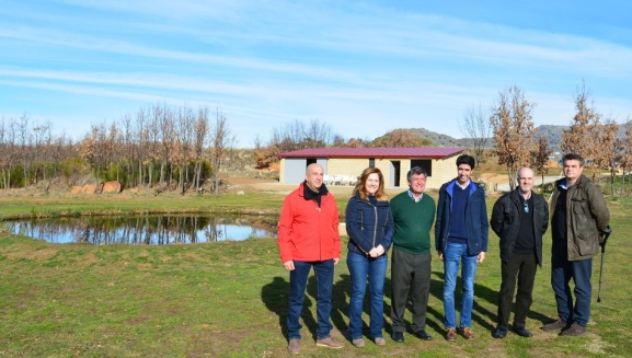 El alcalde de Béjar, Alejo Riñones, acompañado de varios concejales del Ayuntamiento de Béjar y del secretario de la junta directiva del Club de Golf de Béjar, Carlos de la Fuente, han presentado hoy la nueva sede social construida para completar sus instalaciones.