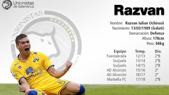 Razvan Iulian Ochirosii se ha convertido en el día de hoy en el último fichaje de Unionistas de Salamanca CF. El defensa, que cumplirá 29 años en marzo, llega cedido hasta final de temporada por el CD Guijuelo, club por el que ha firmado las dos próximas temporadas.