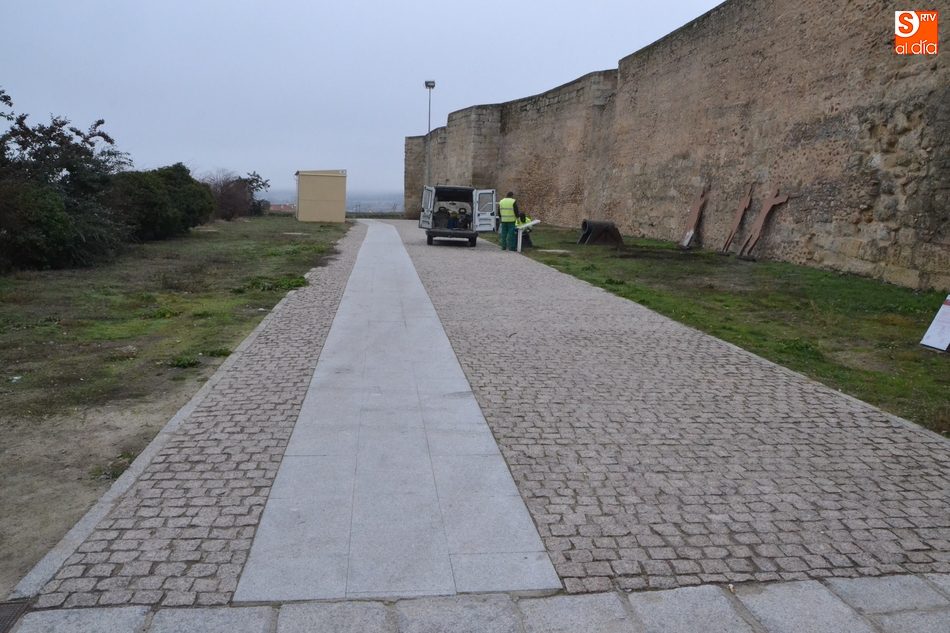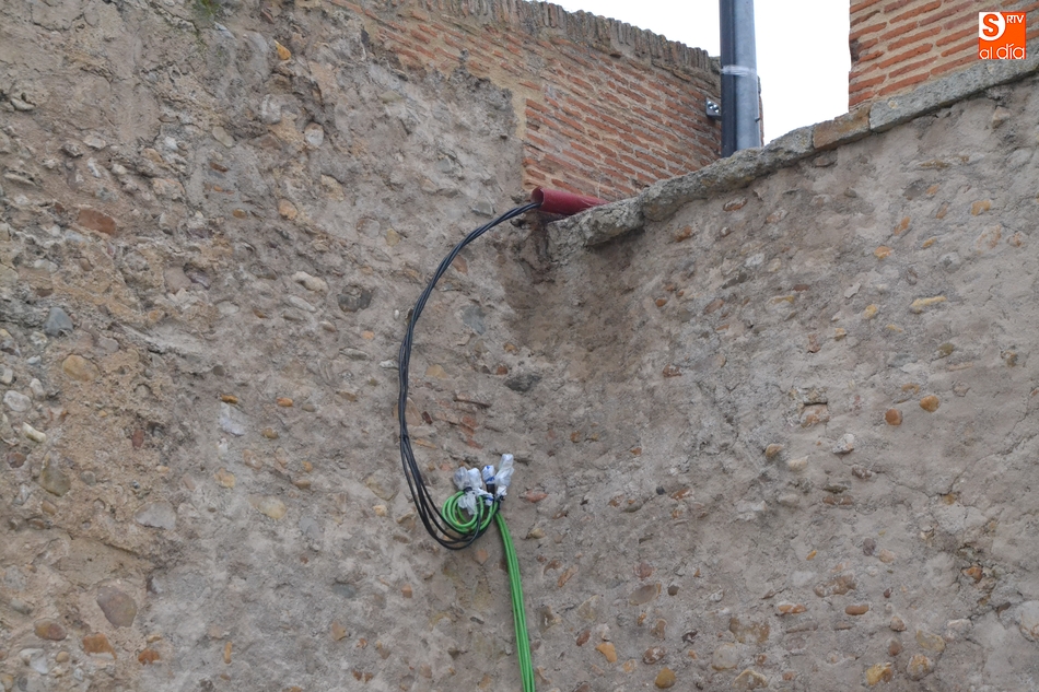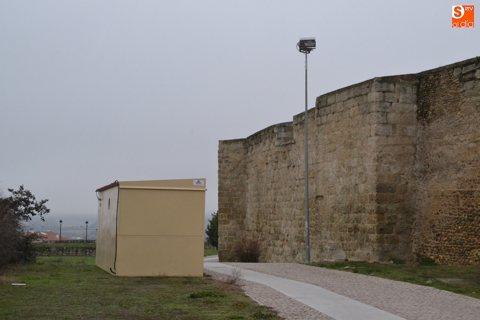CIUDAD RODRIGO | Ya están colocados dos focos en altura para iluminar el Paseo