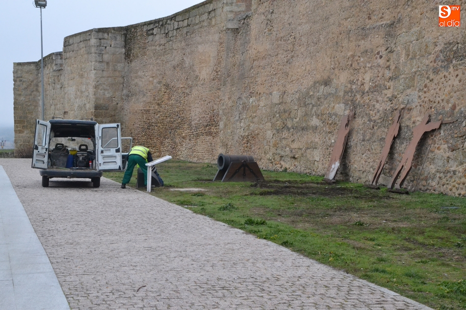 Evidentemente, para hacer posible la instalación de estas casetas, es necesario retirar todos los elementos que hay habitualmente en el Paseo, como son los focos a pie de Paseo, un panel informativo, un cañón y la silueta de varios soldados. Operarios municipales estuvieron trabajando justamente en esta operación en la mañana del martes.