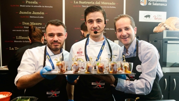 Además de los showcooking y degustaciones de las tapas, el stand de Salamanca Para Comérsela será hoy, una vez más, escenario de diferentes degustaciones a cargo de las empresas patrocinadoras. Además durante las tres jornadas se podrán degustar: ibéricos de la mano de La Hoja del Carrasco e Ibéricos Montellano, con cortador de jamón y entre otros, hornazos, pan, aceites y quesos de la tierra.