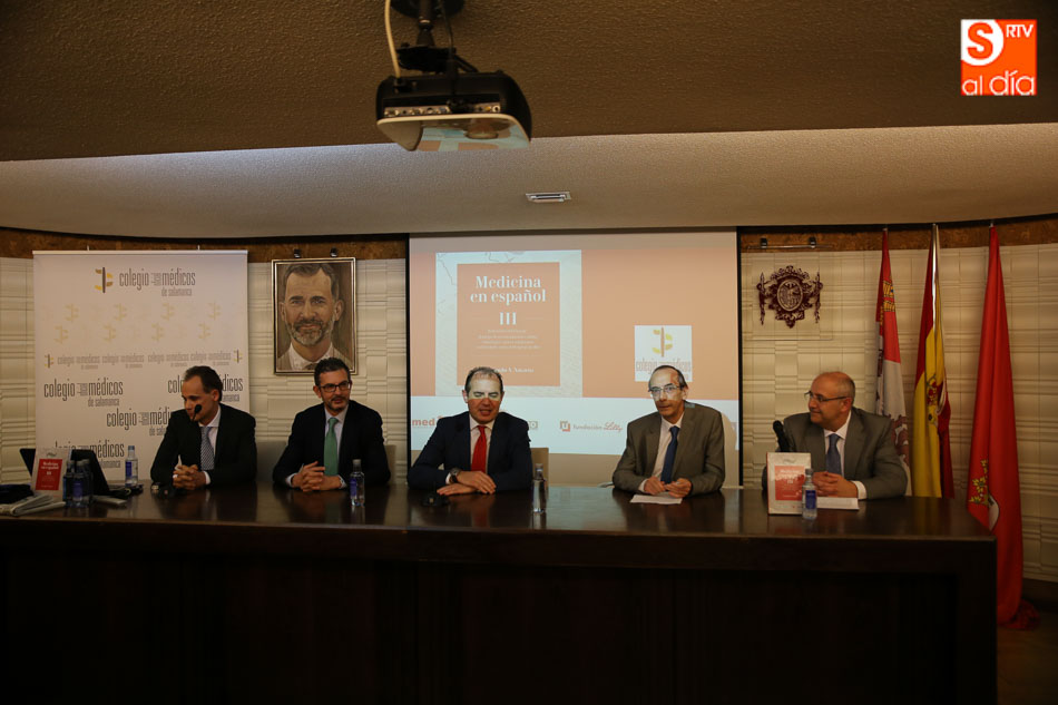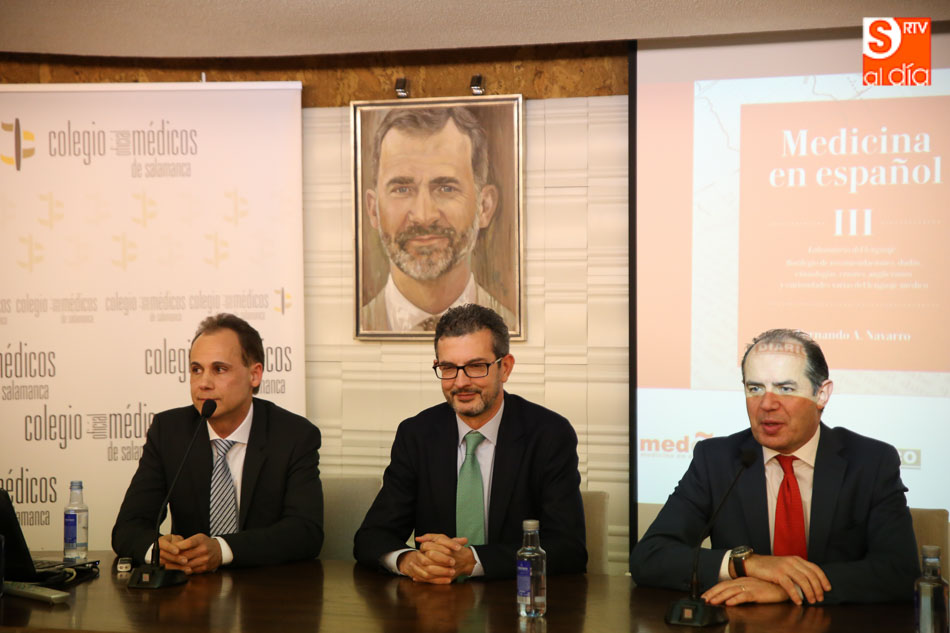 El salón de actos del Colegio de Médicos acogió la presentación del libro 'Medicina en español III', de Fernando A. Navarro, traductor médico salmantino. El acto estaba organizado por el colegio de médicos en colaboración con la Fundación Lilly, que edita el libro junto a Diario Médico, publicación profesional de Unidad Editorial. La obra fue presentada por el doctor Juan Manuel Igea, alergólogo y humanista.