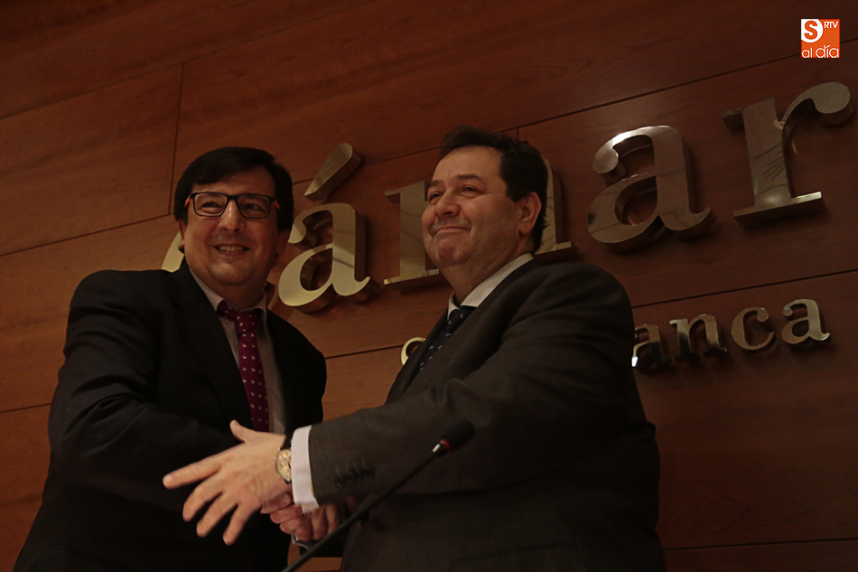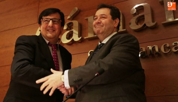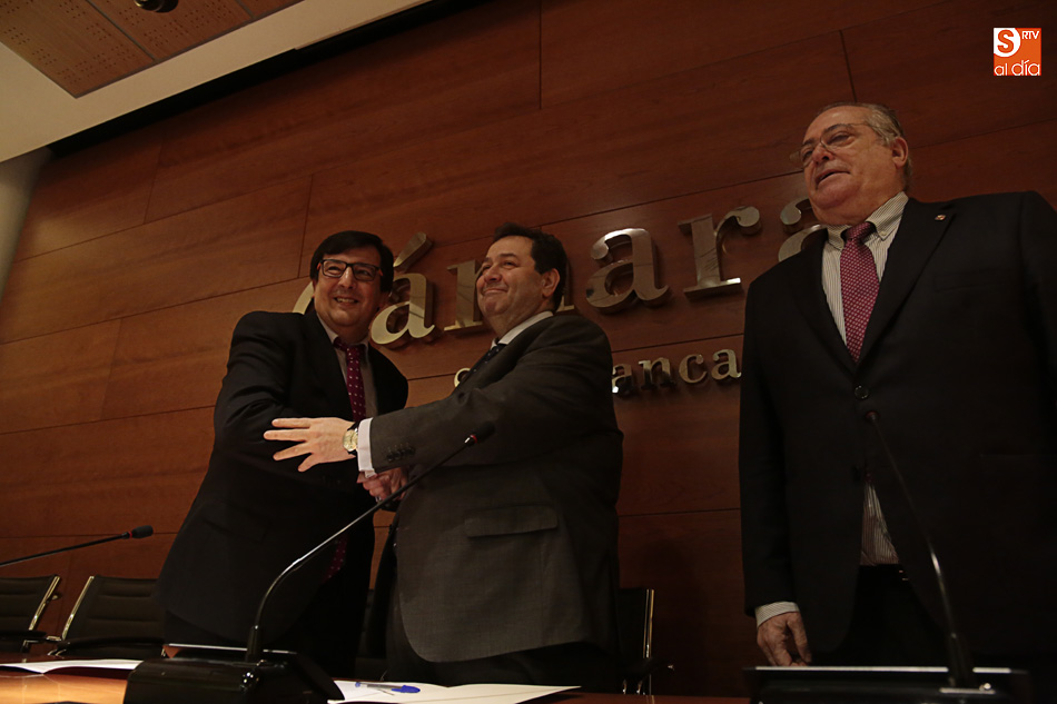 El presidente de la Cámara de Comercio de Salamanca, Benjamín Crespo, ha firmado un convenio con Antonio Alonso, responsable de la empresa Smart Capital, que colaborará en la formación de, al menos, 30 empresarios salmantinos.