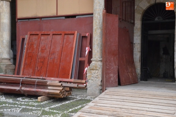 Desde la mañana del miércoles está en marcha la transformación de la Plaza Mayor de Ciudad Rodrigo para poder acoger a partir del 9 de febrero el Carnaval del Toro 2018. El punto de arranque de esta transformación fue la instalación de los toriles exteriores que se sitúan en los soportales de la Casa Consistorial junto a la entrada a los toriles fijos que hay dentro del propio edificio. Además, se ha colocado la rampa de madera que permitirá a los astados entrar y salir de esos toriles.