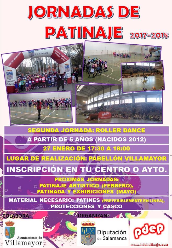 El pabellón municipal de Villamayor acogerá el próximo sábado, 27 de enero, la segunda jornada de patinaje del programa de Juegos Escolares de la Diputación de Salamanca. Comenzará a las 17.30 horas y será una jornada de Roller Dance (baile con patines).