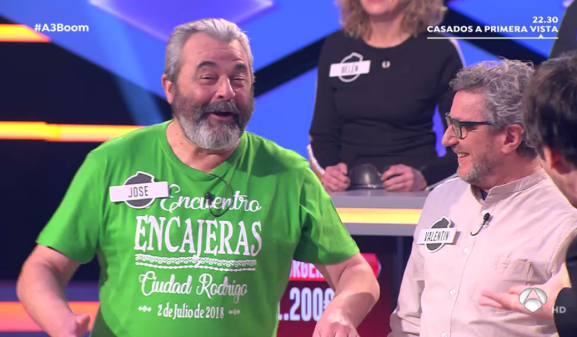 El ganadero de Casillas de Flores José Pinto ejerció una vez más en la emisión de la tarde del jueves del concurso de Antena 3 ¡Boom! como hombre-anuncio, algo que viene haciendo desde su paso por Saber y Ganar para dar a conocer diferentes cuestiones de la comarca mirobrigense a través de sus camisetas.