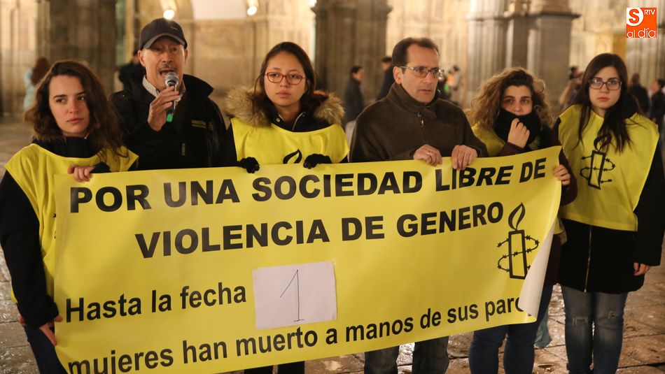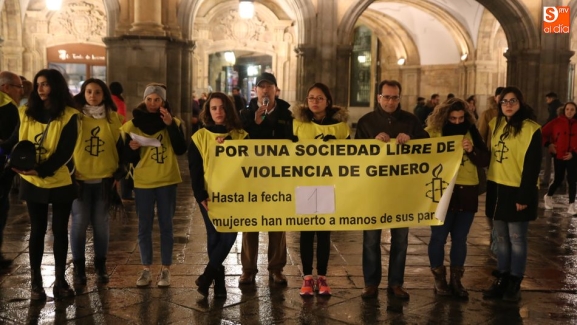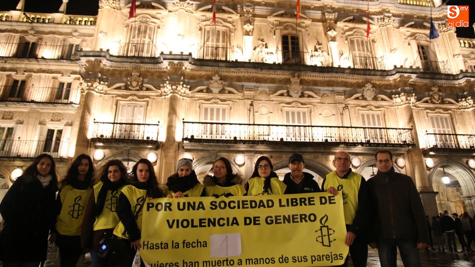 Según cifras del Ministerio de Sanidad, Servicios Sociales e Igualdad, durante el recién terminado 2017 la cifra de víctimas de violencia de género ha superado la de 2016, lo que unido a la antigüedad de la Ley de Medidas de Protección Integral contra la Violencia de Género y el establecimiento de Juzgados de Violencia contra la Mujer que entraron en vigor hace ya catorce años (datan de 2004), Amnistía Internacional considera que hay que tomar mayores medidas para paliar esta lacra. Por esta razón, sus miembros, como todos los últimos jueves de cada mes, realizaron una performance en la Plaza Mayor.