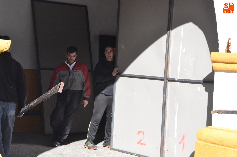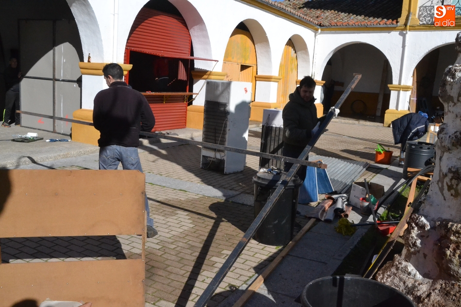 La tradición marca que dos fines de semana antes del Carnaval la Plazuela del Buen Alcalde de Ciudad Rodrigo se transforma por completo, de la mano de las peñas que tienen cada año allí sus casetas, que durante este fin de semana empiezan poco a poco a levantarlas.