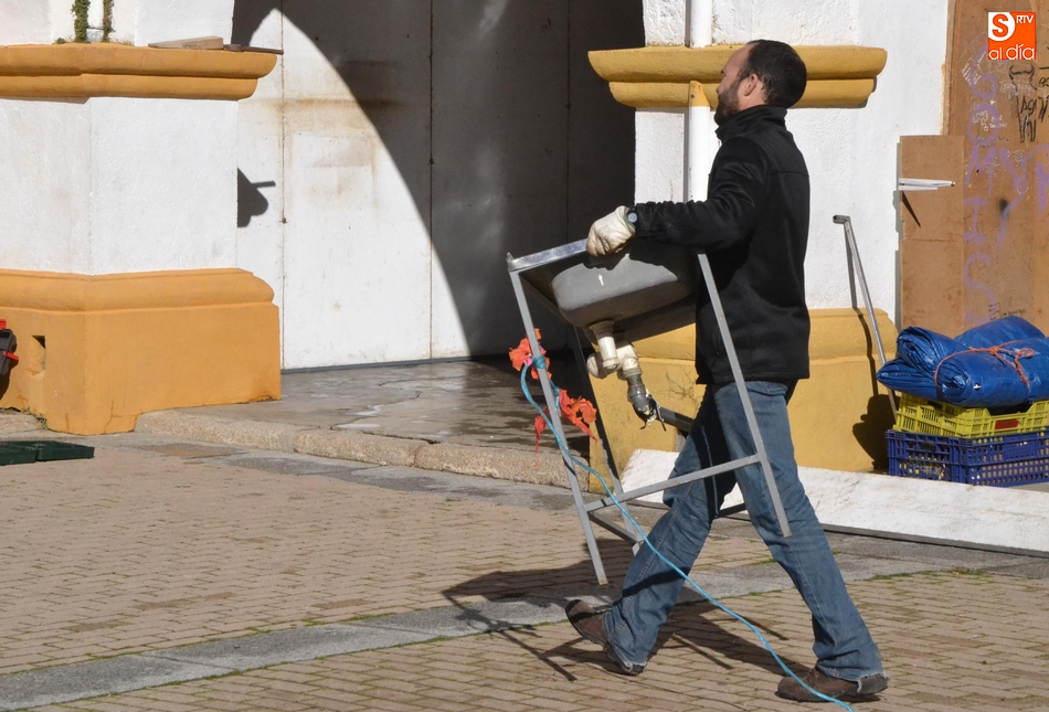 Hay que recordar que este montaje tan 'tempranero' en la Plazuela del Buen Alcalde es debido a que unos cuantos de los implicados en estas casetas estarán el próximo fin de semana volcados en el montaje de los tablaos de la Plaza Mayor mirobrigense.