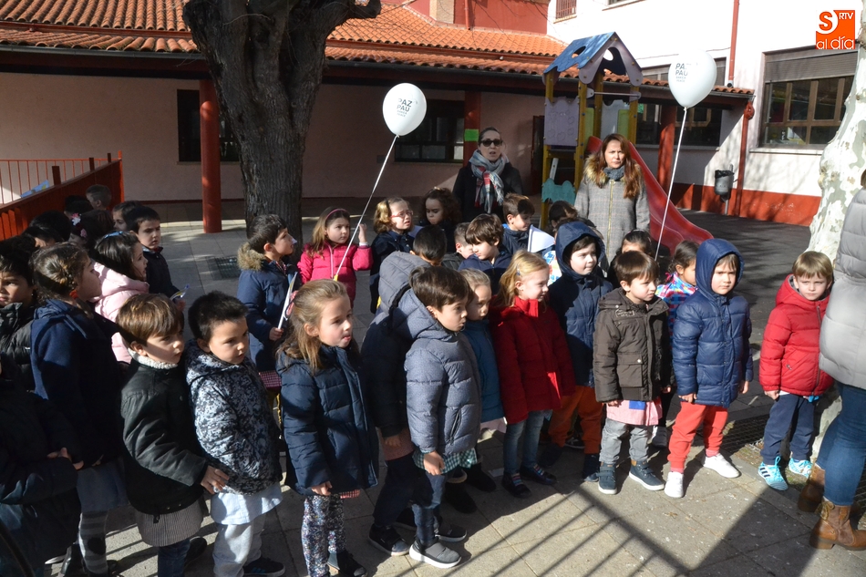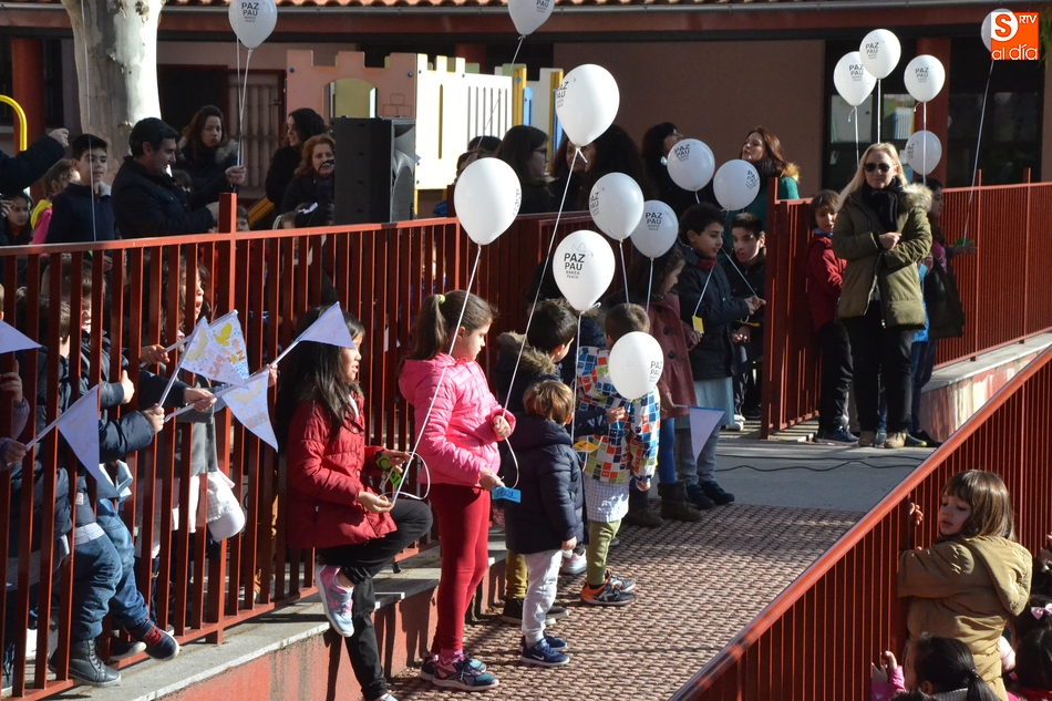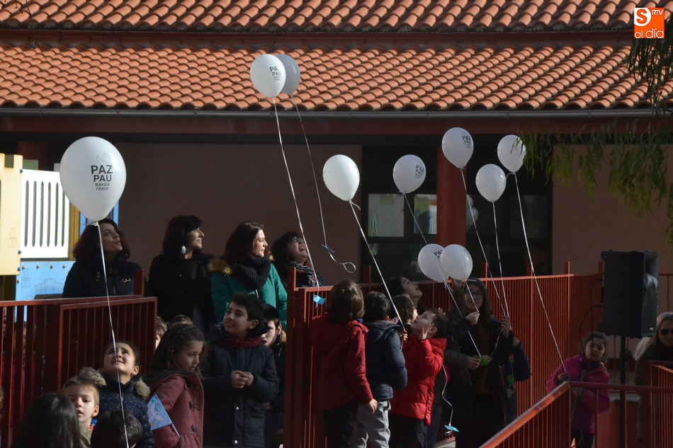 El acto principal tuvo lugar como es tradición en el patio, donde se dieron cita todos los profesores y alumnos para mostrar su "compromiso por la paz" realizando una suelta de globos que tenían impresa la palabra Paz en castellano (y gallego), catalán, euskera e inglés. Cada uno de esos globos llevaba además enganchada mediante una cinta una cartulina con la palabra paz en un idioma diferente: húngaro, hebreo, soajili, chino, coreano, quechua, francés, inglés, alemán, hindi, portugués, maorí, turco, egipcio, sueco, peruano, holandés, pakistaní, noruego, árabe, polaco, gaélico, marroquí, ruso, tailandés, japonés, indonesio, italiano y nigeriano.