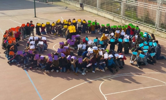 El IES Tierra de Ciudad Rodrigo se sumó en la mañana del martes al Día Escolar de la Paz y la No Violencia con los alumnos de 1º y 2º de la ESO como protagonistas. Estos alumnos salieron justo antes del recreo al patio del centro, para conformar el clásico símbolo pacifista, portando cartulinas de diferentes colores.