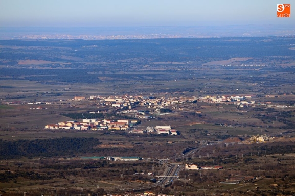 En los días de invierno más claros, las vistas desde lo alto de La Covatilla son excelentes. Como esta de Guijuelo desde el pie de la estación de esquí, en la que se puede observar claramente la villa chacinera, e incluso se atisba Salamanca en el horizon
