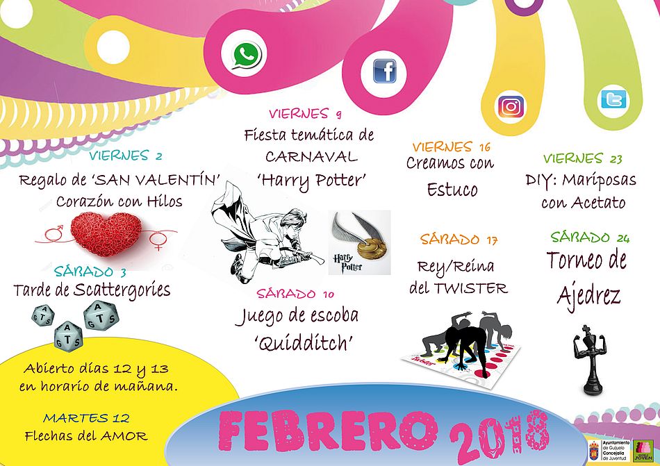 Guijuelo Joven ha presentado en la mañana de hoy la agenda de actividades del mes de febrero, en el que los socios vivirán de primera mano el mundo de Harry Potter con una fiesta temática de carnaval que incluirá un divertido juego de escobas.