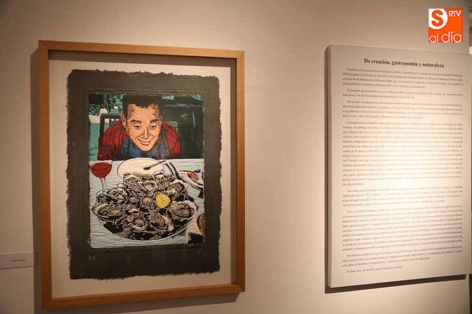 Gastronomía y naturaleza se unen en la muestra pictórica que hasta el próximo 25 de febrero se podrá visitar en la sala de exposiciones La Salina. Un total de 25 artistas aportan sus grabados a esta innovadora iniciativa que se enmarca en la celebración del VIII Centenario de la Universidad de Salamanca y que ha surgido de la colaboración del Instituto de Investigación en Arte y Tecnología de la Animación de la USAL y de la Escuela Municipal de Hostelería de Santa Marta de Tormes.