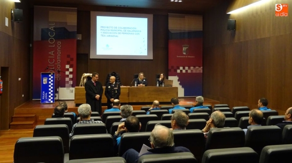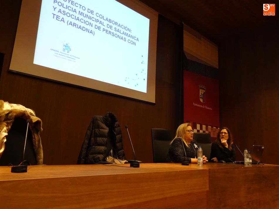 Ariadna, Asociación de Personas con Autismo de Salamanca, ha desarrollado esta mañana una jornada de formación en las dependencias de la Policía Local con el objetivo de que los agentes conozcan qué es el TEA (Trastorno del Espectro Autista), el funcionamiento cognitivo de los usuarios y cómo facilitar la relación e intervención con ellos. El jefe de la Policía Local y el presidente de la asociación han asistido a la apertura de esta actividad, que ha sido impartida por María Ángeles Beltrán, una de las psicólogas de Ariadna, y María del Carmen Calvo, secretaria de la asociación.