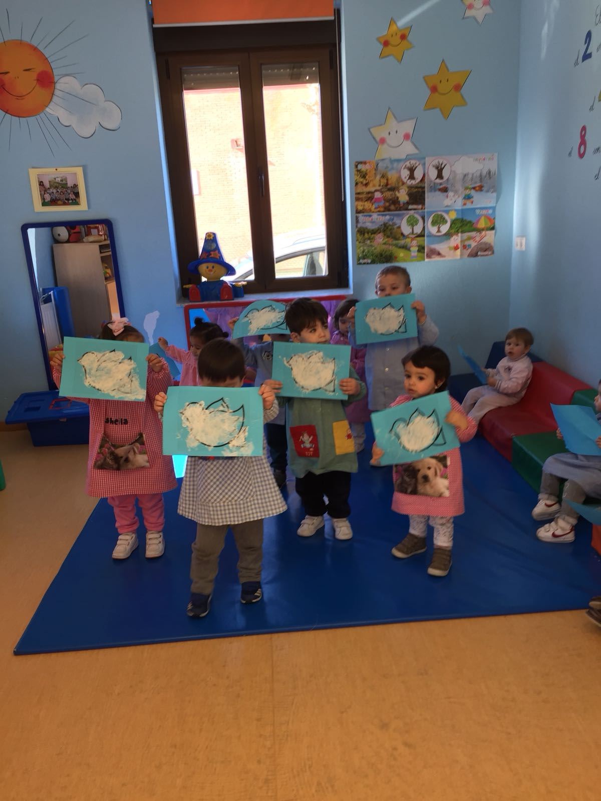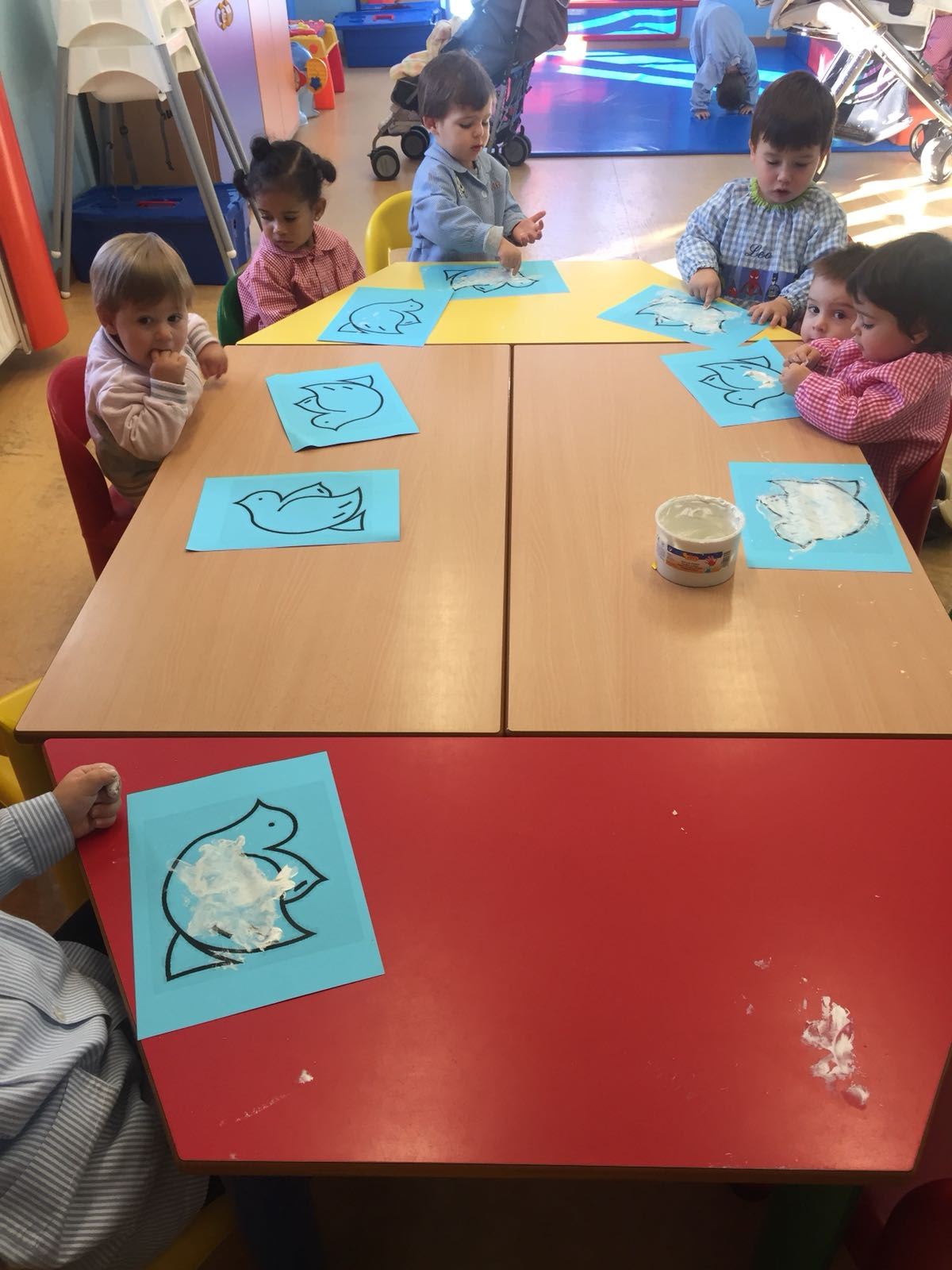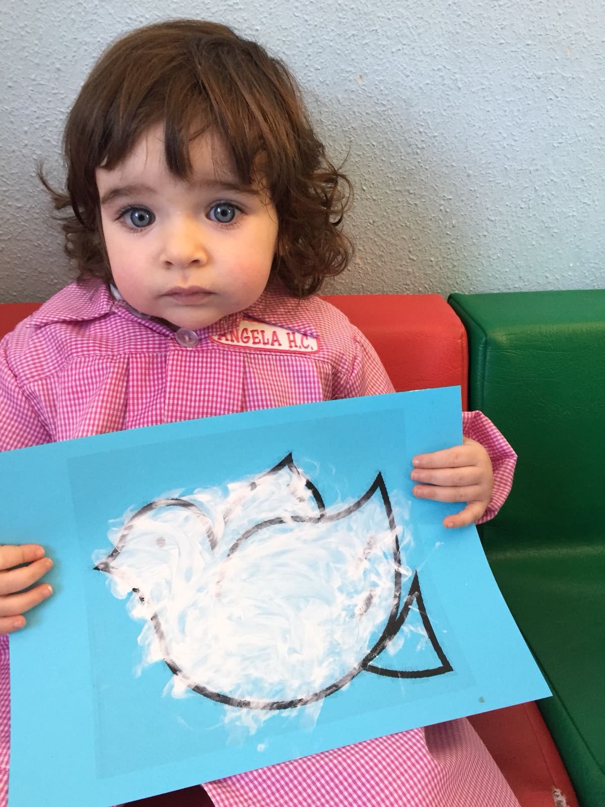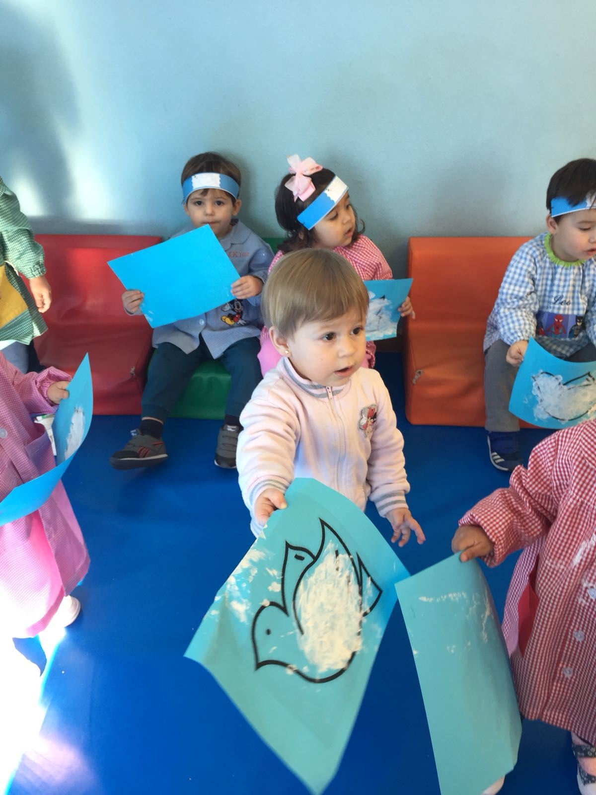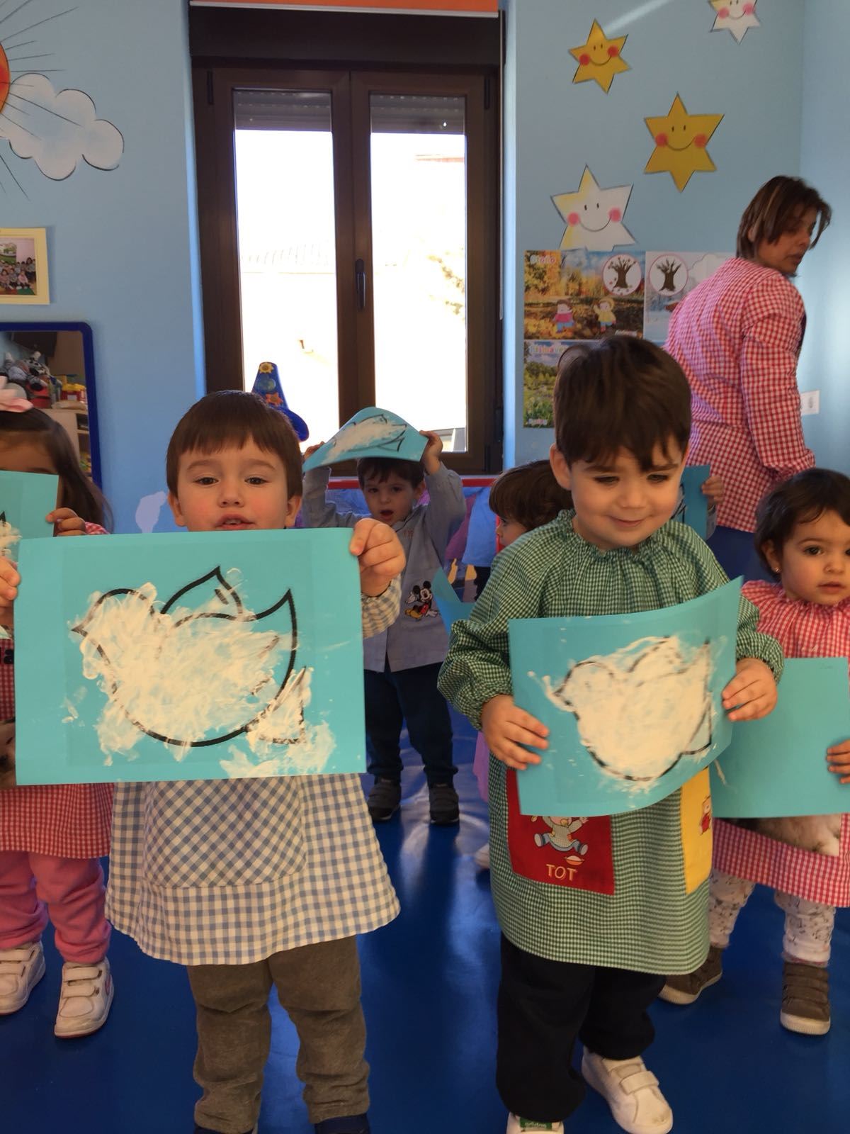 a guardería de Villoria se han sumado a la celebración pintando palomas blancas.